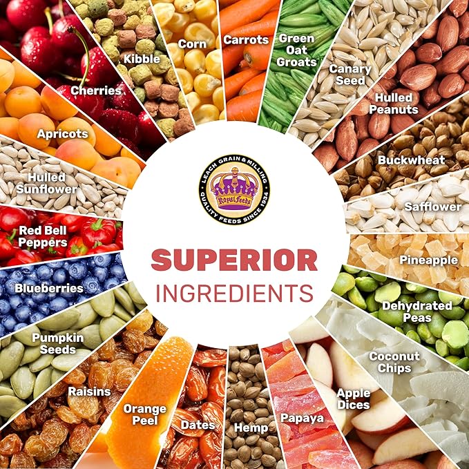 - ππππ ππππ ππππ πππππππππππβ This diverse mix of seeds, grains, and dried fruits, including papaya, blueberries, apples, and coconut chips, provides exciting textures and flavors to keep birds engaged. The natural ingredients stimulate their senses, encourage foraging behavior, and prevent mealtime boredom, ensuring they enjoy every bite while receiving a nutritionally complete diet.