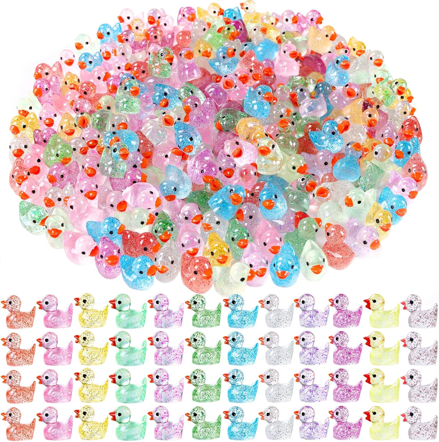 - 【You Will Have】You will get 200pcs glitter ducks in 12 different colors. enough quantity and color to meet your different needs. cute and realistic that perfect for decorate your Dollhouse Micro Fairy Garden Landscape Aquarium and more.