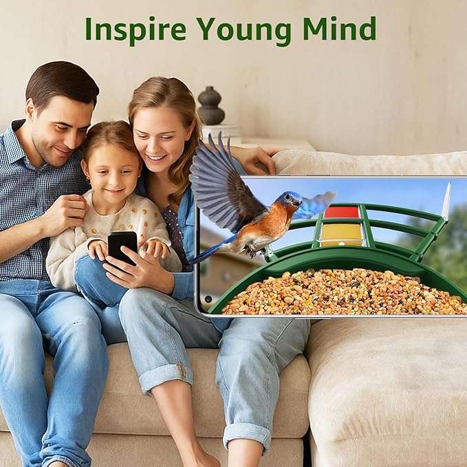 - ✅【User-friendly & Easy Setup】Setup is a breeze—just connect via 2.4G WiFi (not fit 5G) and enjoy! It can be mounted anywhere in your backyard (strap/drill/polemounting). The transparent seed tray makes refilling simple, perfect for hassle-free bird feeder with camera use. A durable bird watching gift for family and friends. Gift choice for Mother's Day, Father's Day, birthday, Christmas, Valentine's Day, etc.