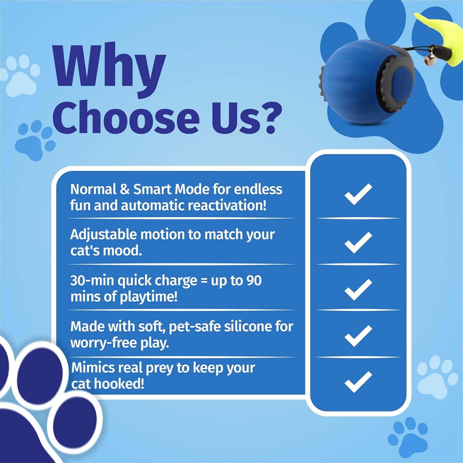 Speedy Tail 2.0 Cat Toy, Interactive Cat Toys for Indoor, Automatic Moving Kitten Rolling Ball with Tail, Rechargeable & Two Speed Adjustment, Smart Interactive Dog Ball, Rollie Pet Chase, Blue