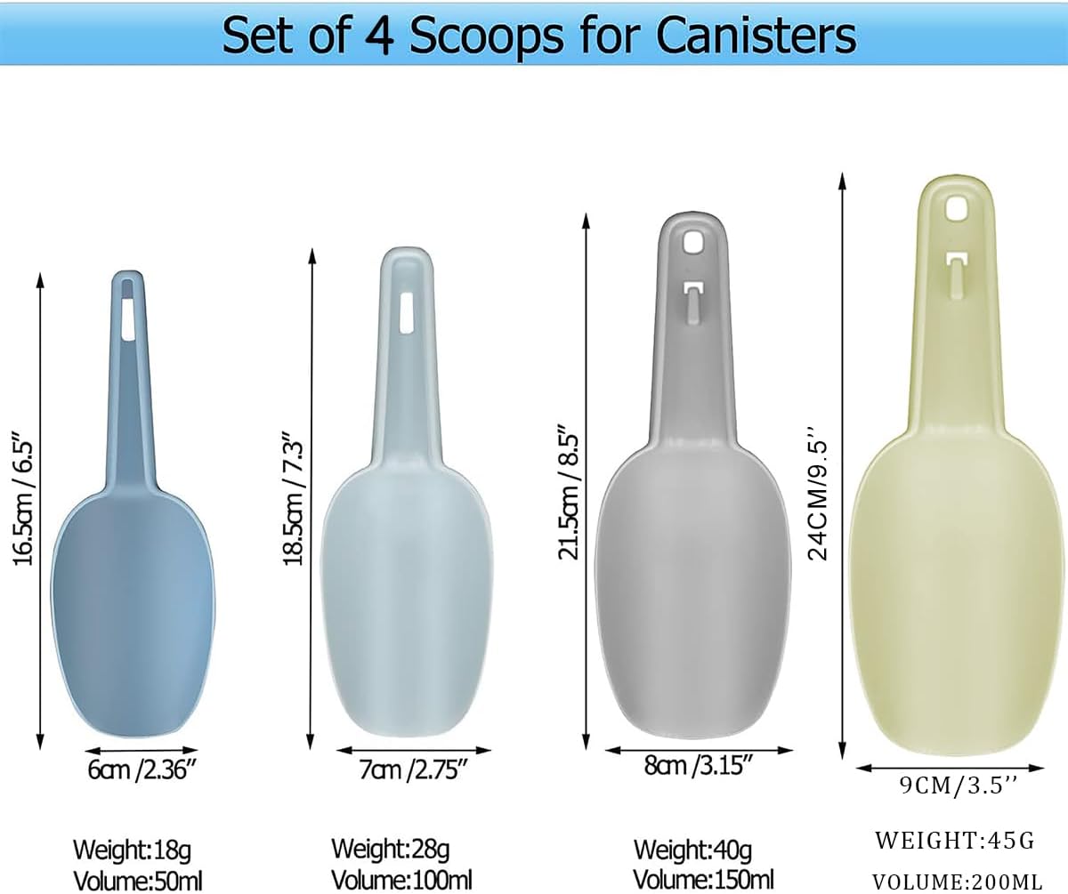 Plastic Scoops for Canisters Pack of 4, Plastic Scoop for Ice Cubes, Flour Scoops Dry Goods Coffee Beans & Cereals