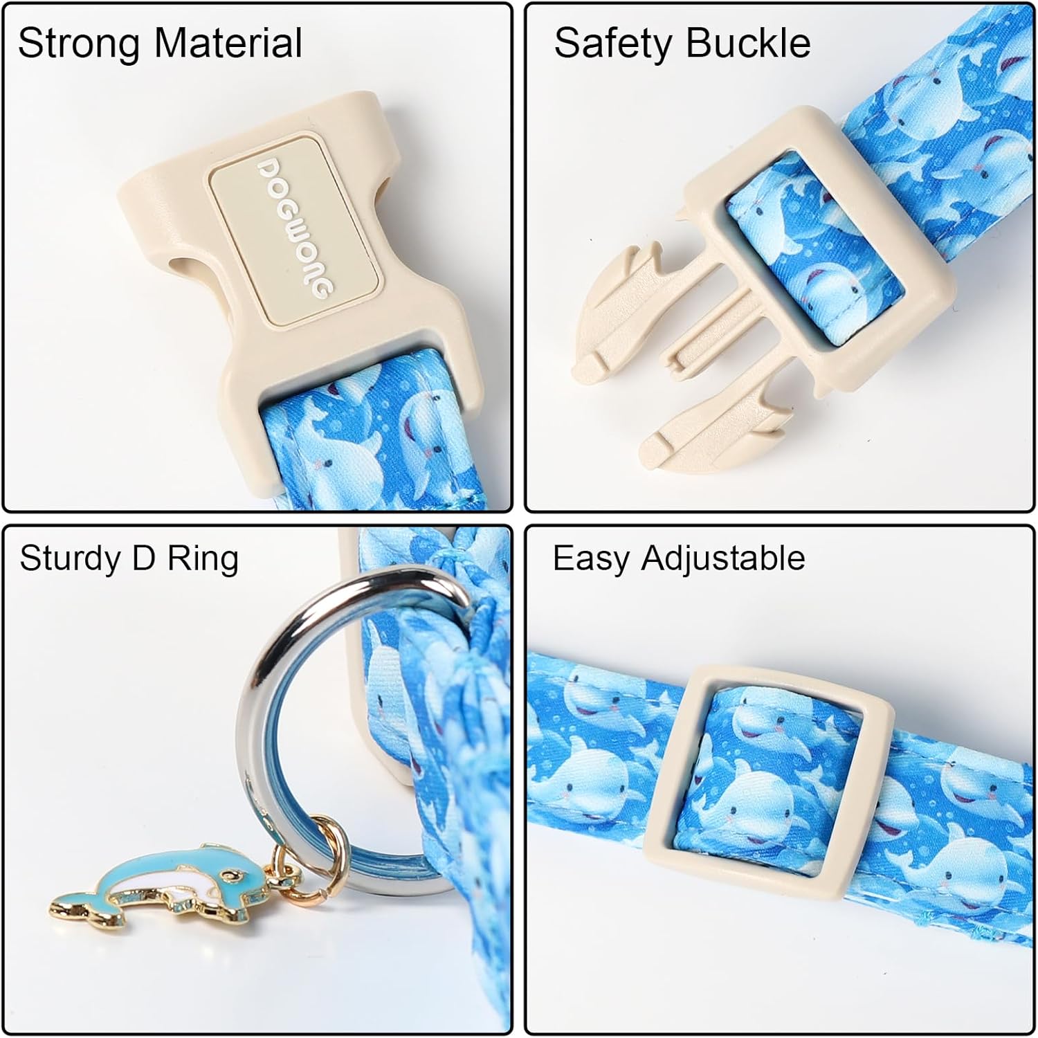 DOGWONG Whale Cotton Dog Collar, Summer Cute Shark Dog Collar Durable Soft Fabric Male Pet Dog Collars Boy Puppy Necklace for Small Medium Large Dogs