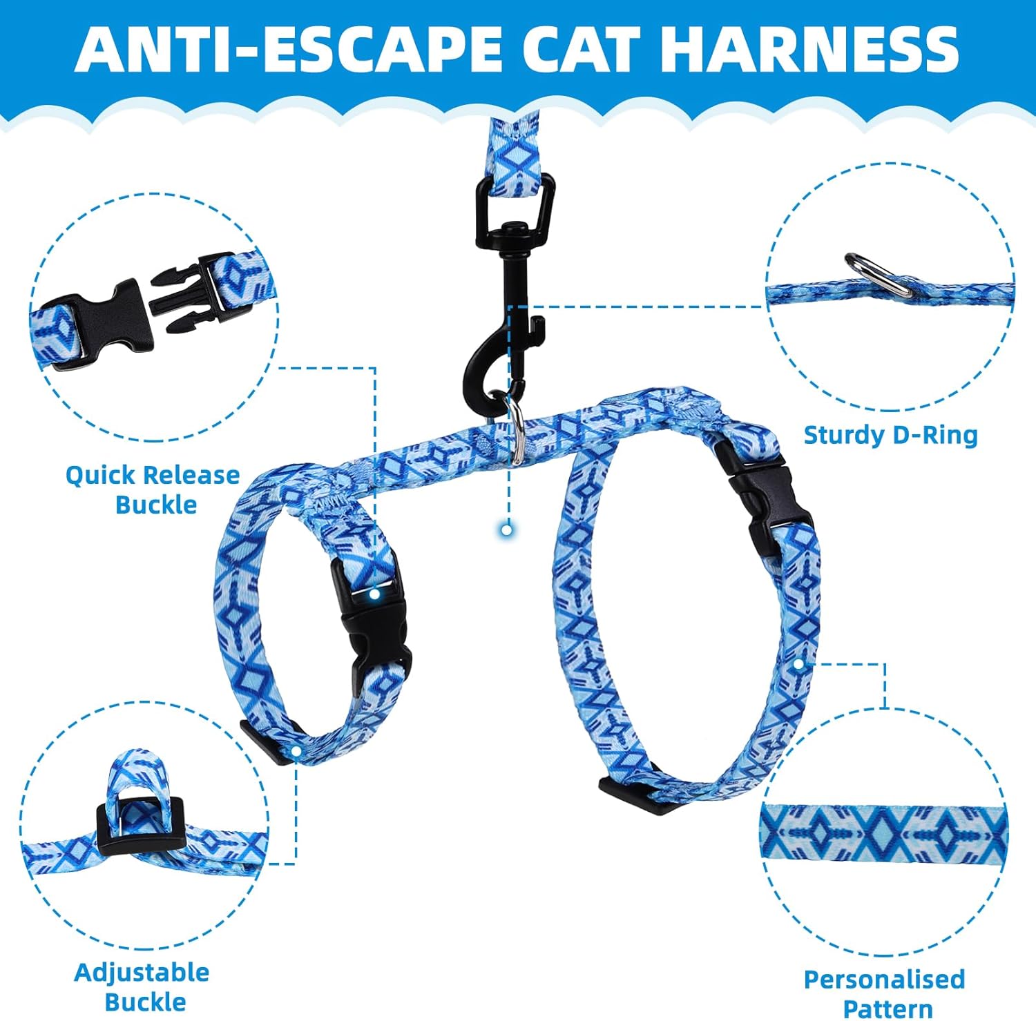 - CUTE CAT HARNESS AND LEASH SET: Our cat harnesses are fashionable in bright colors and exquisite patterns. With pretty pattern, this cat vest harness becomes more beautiful. Put it on and your cat will instantly become the center of attention