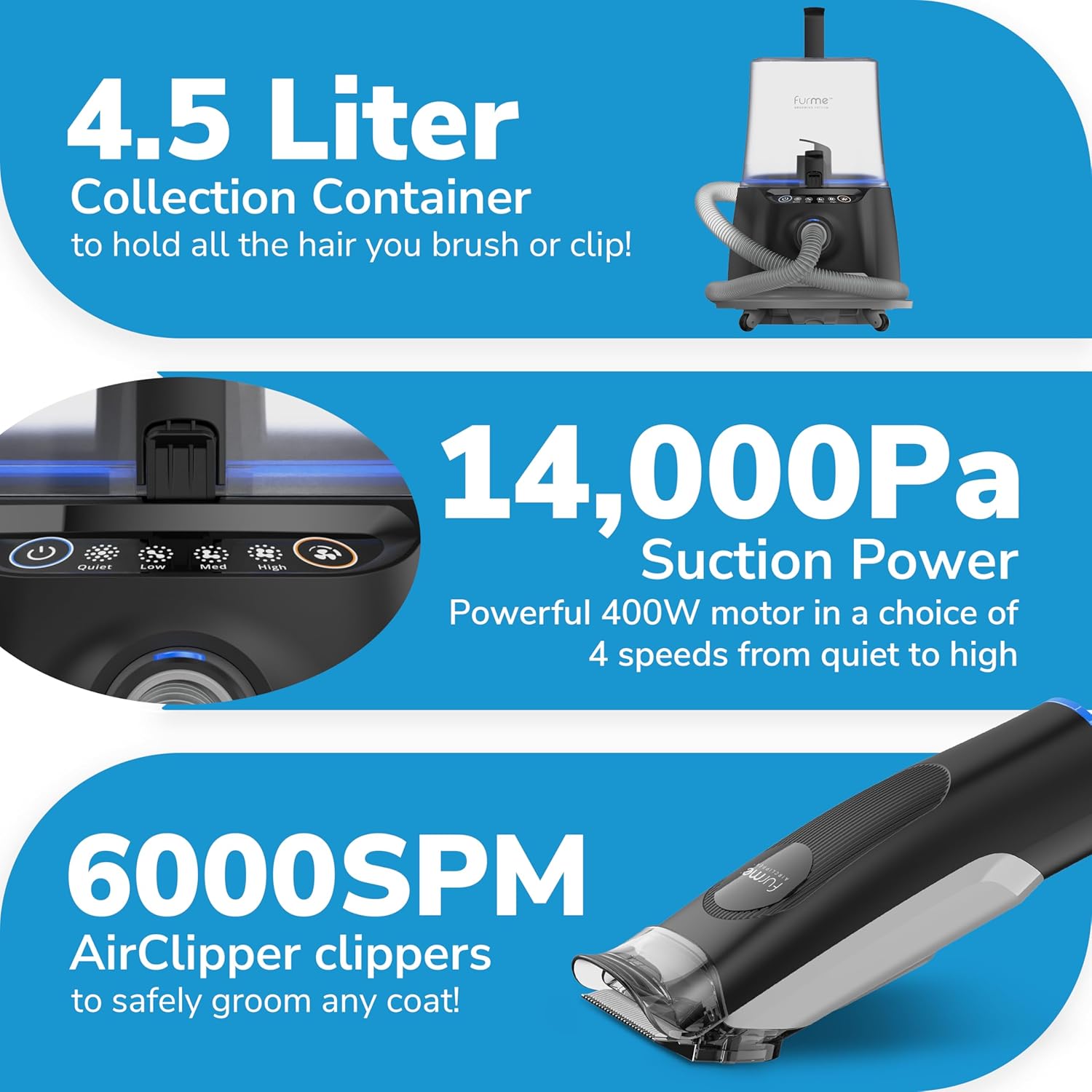FurMe ULTRA Pet Grooming Vacuum Kit - Cat & Dog Grooming Kit For Easy Pet Care at Home, Quiet & Safe Dog Hair Remover Machine with Brush, Clipper, Shedding & Cleaner Tools & 4.5L Canister