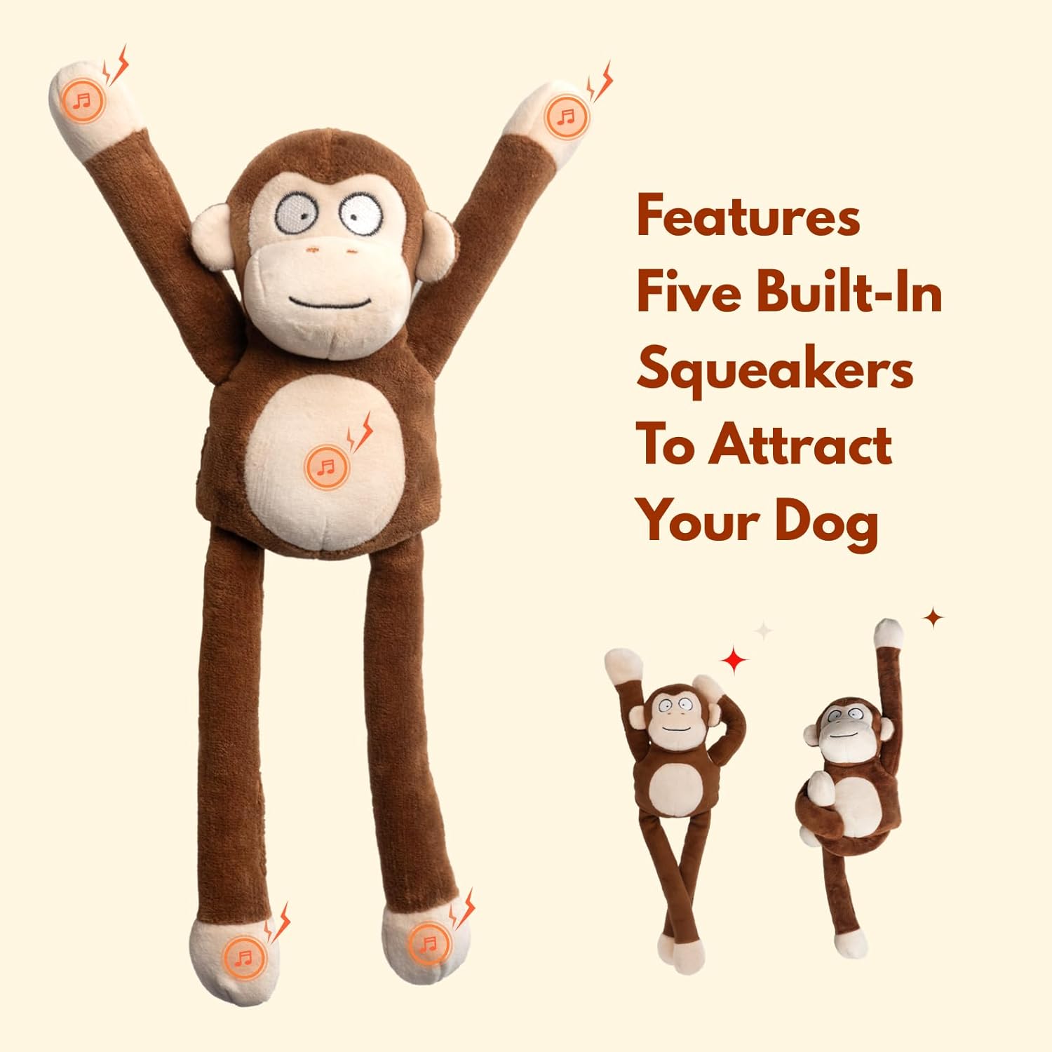 Squeaky Dog Toys with Crinkle Paper Durable Tug of War Monkey Plush Dog Toy with Soft Fabric for Small Middle and Large Dogs