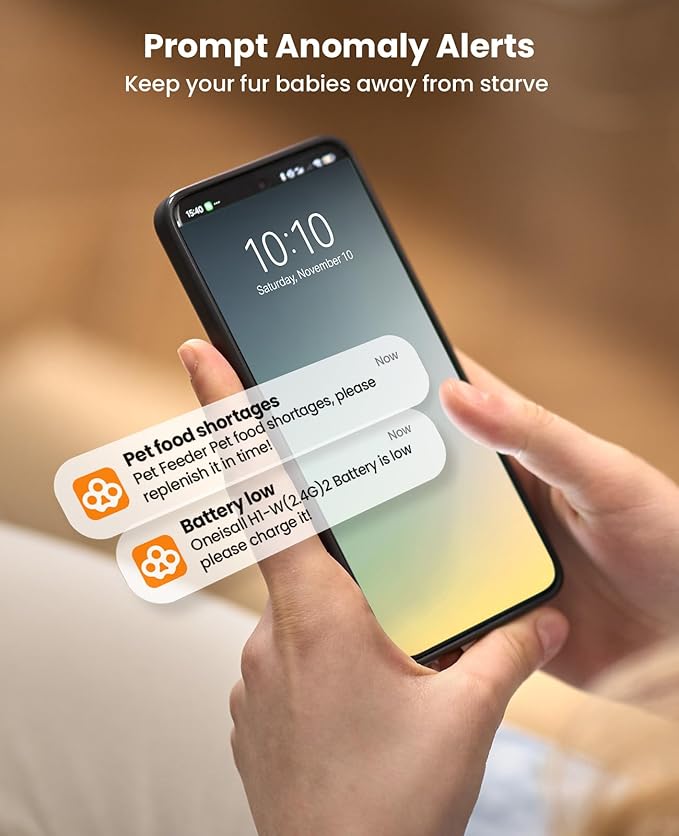- Remote Care for Your Cats: Remote Care for Your Cats: Connect via 2.4GHz WiFi to Remotely Schedule Up to 10 Daily Meals (1–12 Portions Each). Effortlessly manage your pet’s diet through the dedicated iOS/Android app "oneisall" anytime, anywhere. Real-time meal data tracking helps scientifically prevent overfeeding, fostering a regular and healthy eating routine for your pet.