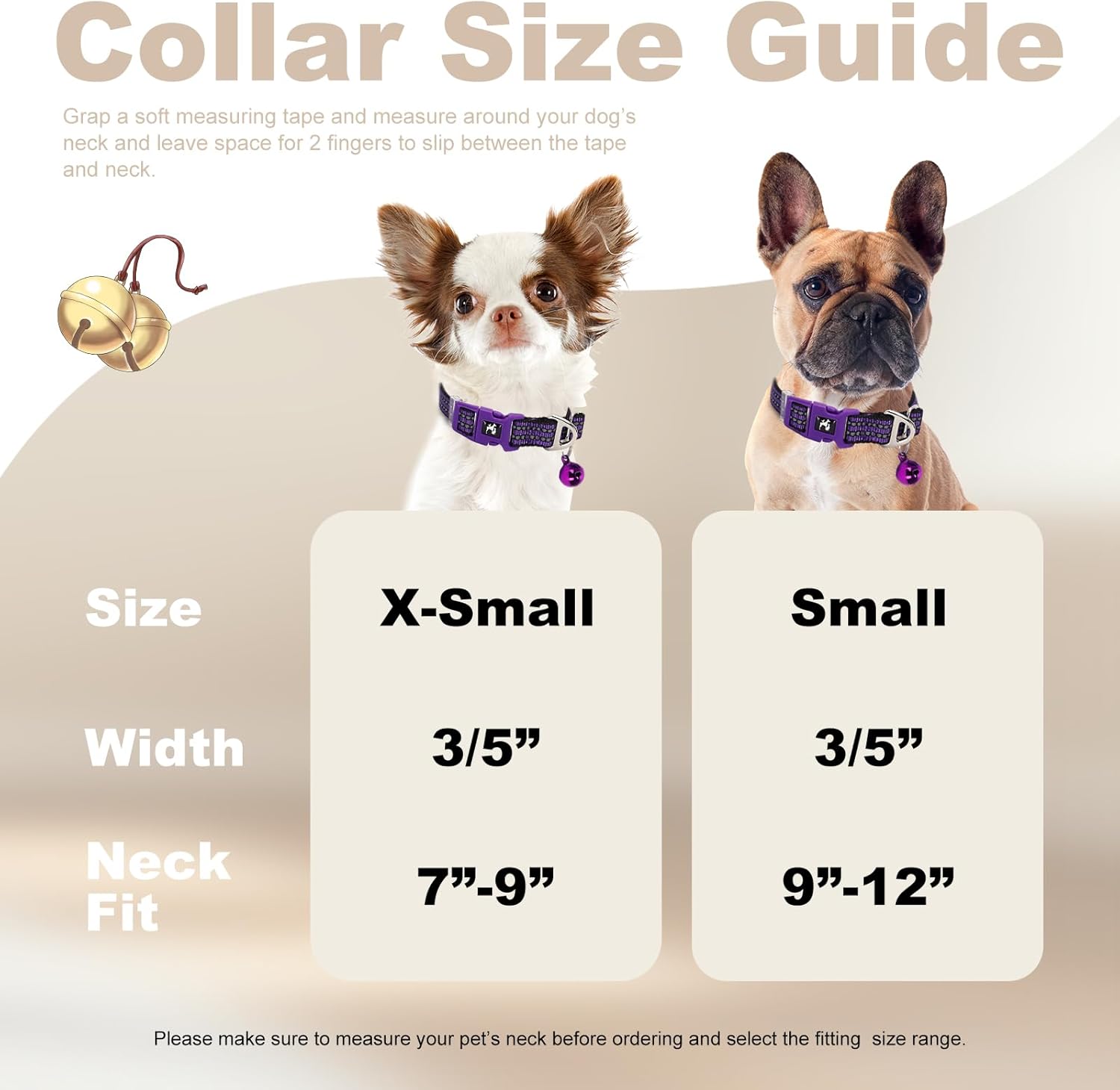 Small Dog Collar with Bell - Cute Reflective Puppy Collar Gift for Girl, Adjustable Nylon Collar for Chihuahua Pomeranian Nighttime Safety (Purple S)