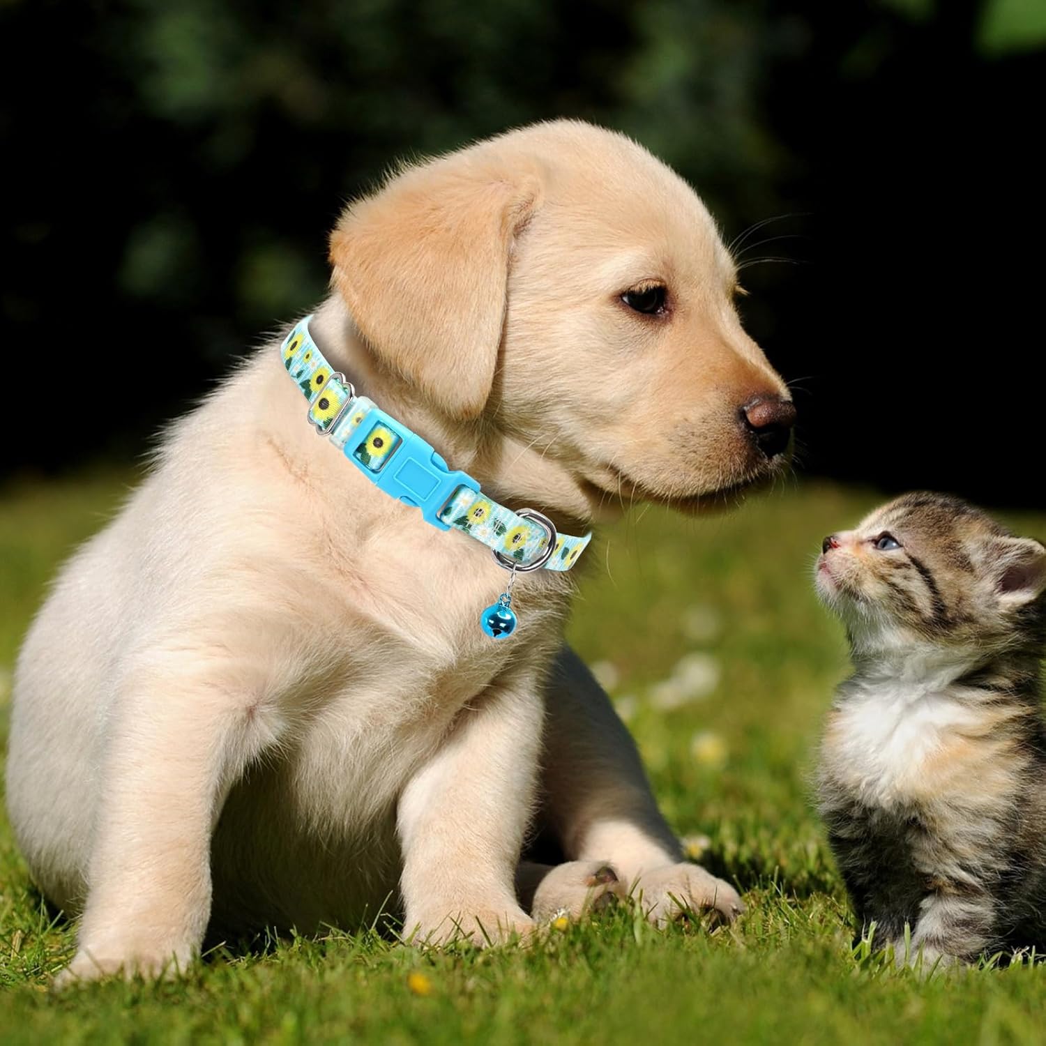 Small Dog Collar with Bell for Small Dogs, Adjustable Sunflower Print Collar for Chihuahua Pomeranian, Soft Comfort Tiny Dog Collar S