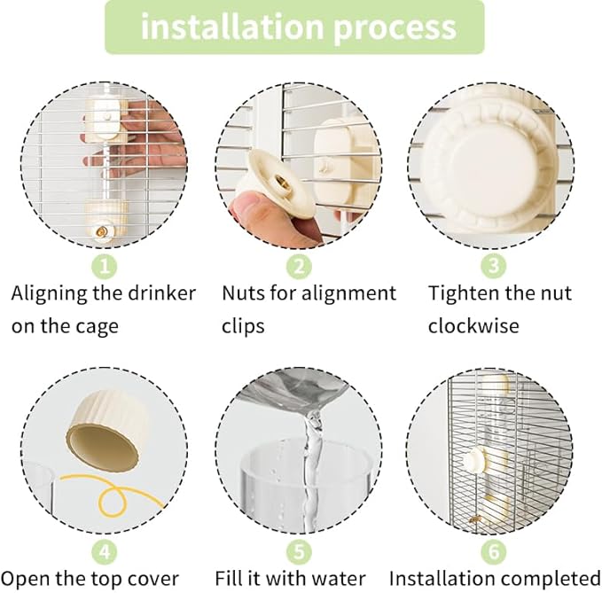 - 【Leak-Proof and Easy to Refill】Refilling water is simple and mess-free with the top cover design. You can easily add fresh water without removing the dispenser from the cage. The upgraded leak-proof connection ensures that water doesn’t spill or leak, helping you maintain a clean and hygienic environment in the cage.