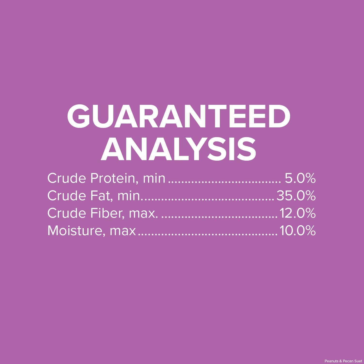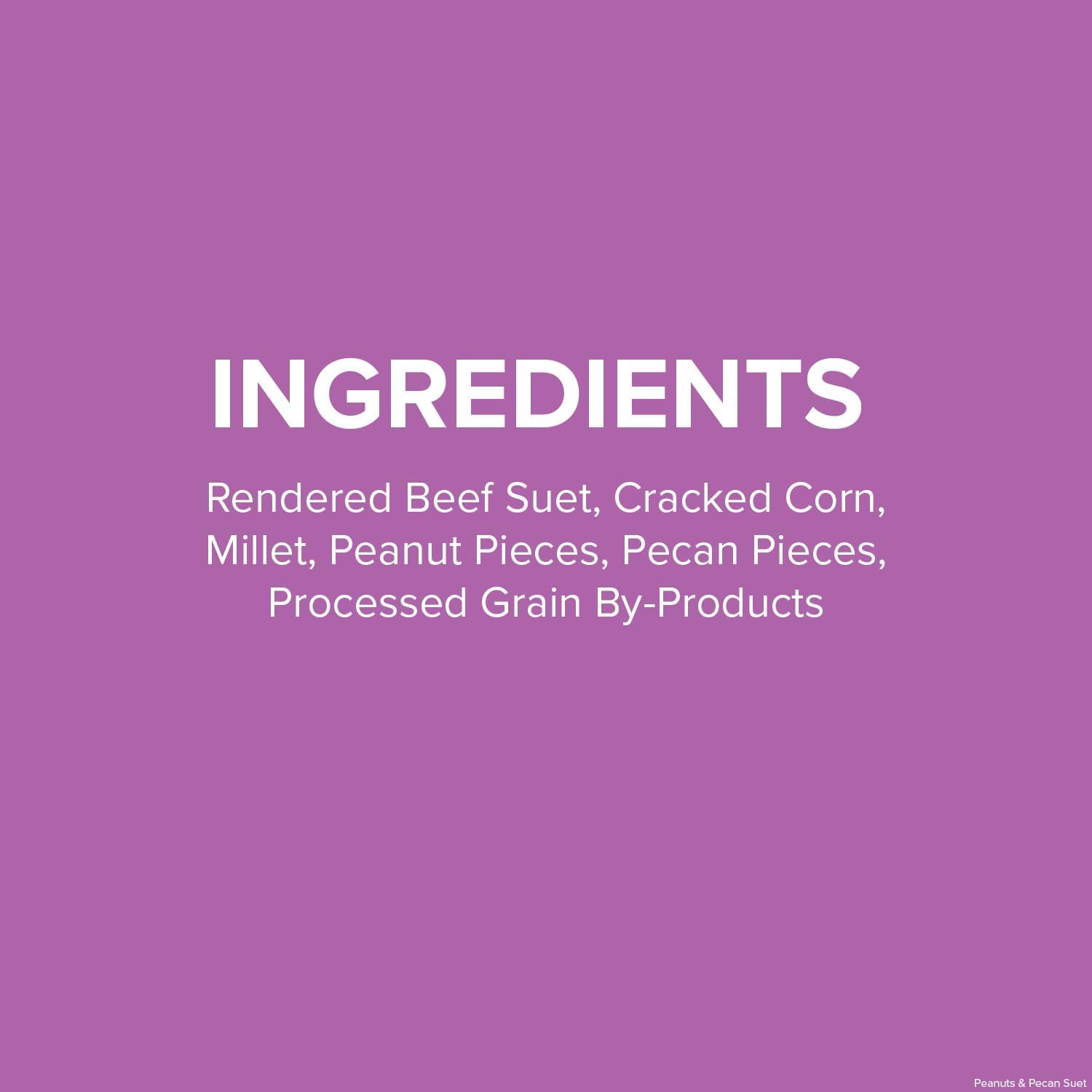 - Our Suet Brings All The Birds To The Yard- Our Blue Seal Peanuts and Pecans Suet Cakes are perfect for generating the extra energy birds need to fuel reproduction in the spring and stay warm in the winter. Packed with premium ingredients, this suet attracts a wide variety of backyard favorites—Woodpeckers, Cardinals, Siskins, Sparrows, Juncos, Blue Jays, Nuthatches, Chickadees, Titmice, and even the Northern Flicker!