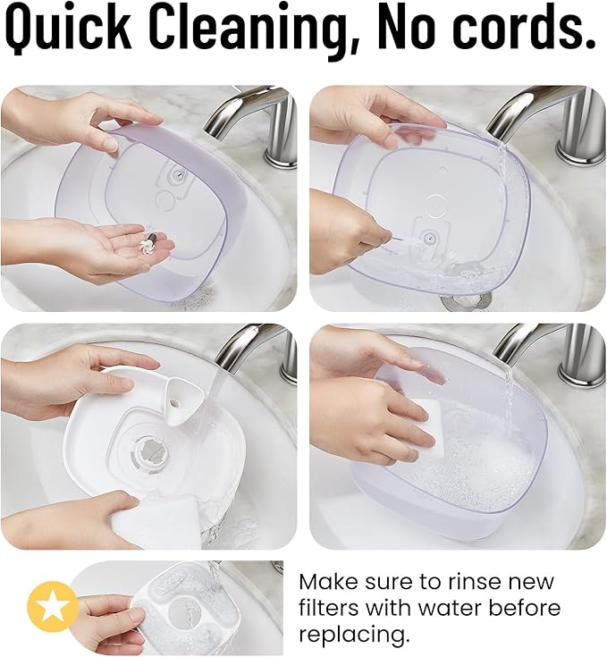 - No Pump Needed: This pet fountain is designed without a traditional pump, making it easier to clean and set up. With fewer parts to worry about, maintenance is simple, and you won’t have to deal with pump-related issues.