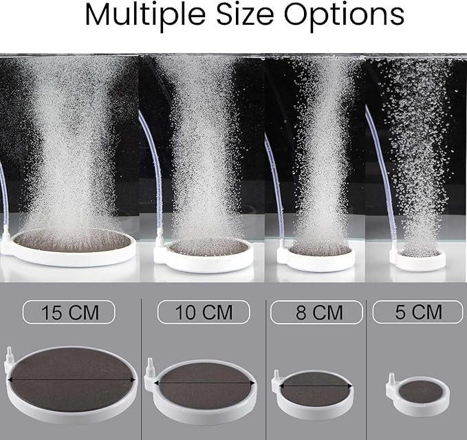 - 3.2 Inch Air Diffuser Area: recommended air pump power>3W, suitable for freshwater and saltwater aquariums ranging from 20 to 70 gallons. Note: If the water is deeper, you may need to choose a higher-powered air pump to ensure optimal performance (air pump are not included).
