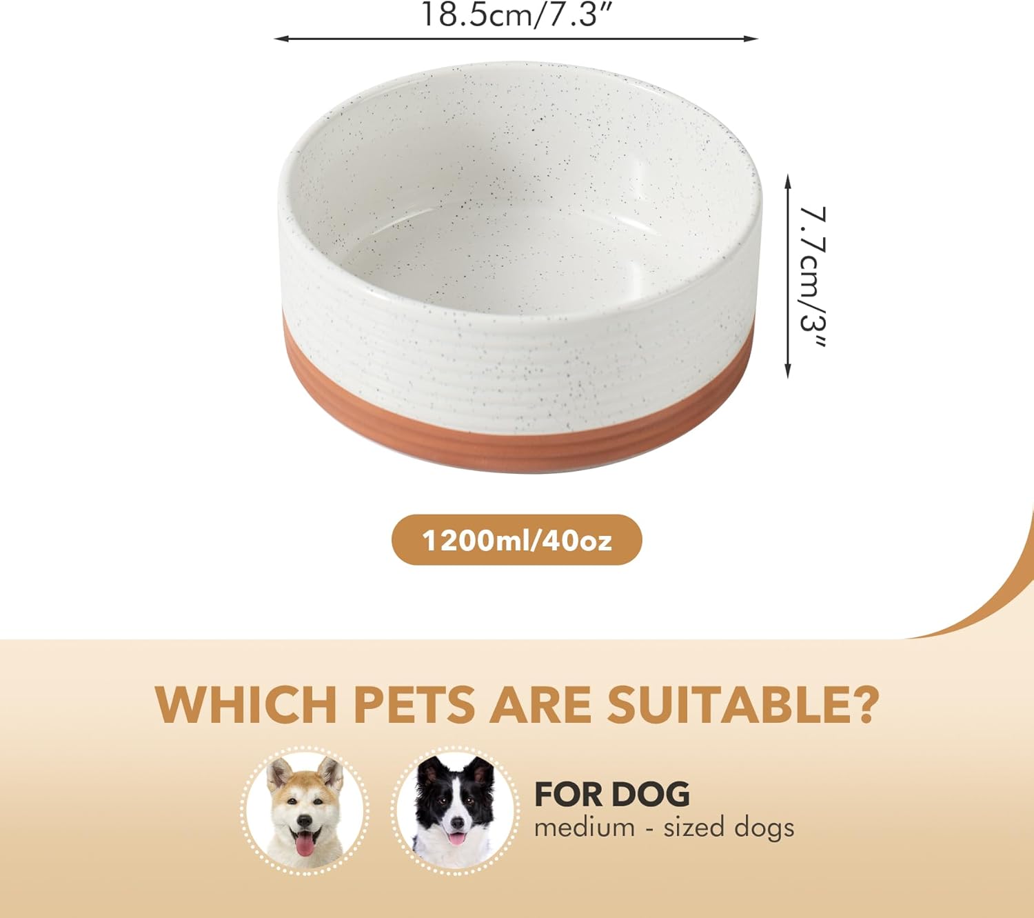 Ceramic 7.3inch Dog Bowl for Medium Breed Dogs, Anti-Slip and Weighted Pet Food and Water Dishes(Single Bowl, Vanilla White)