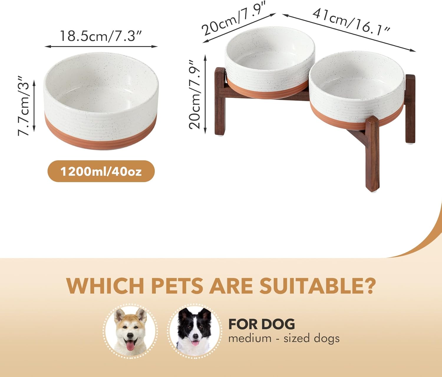 - Acacia Wood Stand: Adopting with classy acacia wood stand, this aesthetically pleasing ceramic dog bowls with stand fits perfectly with any home decor style. By flipping the stand over , you can get 2 different heights to hold the pet bowl. Let‘s elevated bowl company with your pet in different growth stages.
