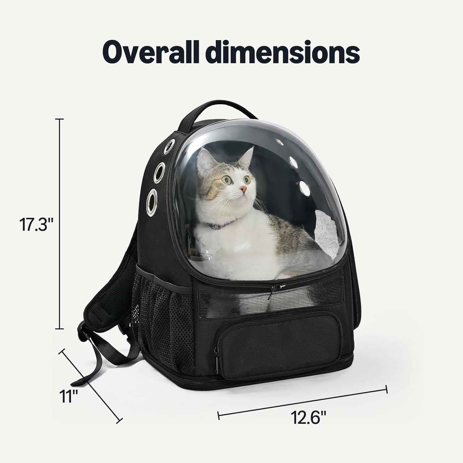 Amazon Basics Pet Carrier Backpack for Small Cats & Dogs, Collapsible Travel Carrier with Bubble Window & Breathable Mesh, Foldable for Travel, Black