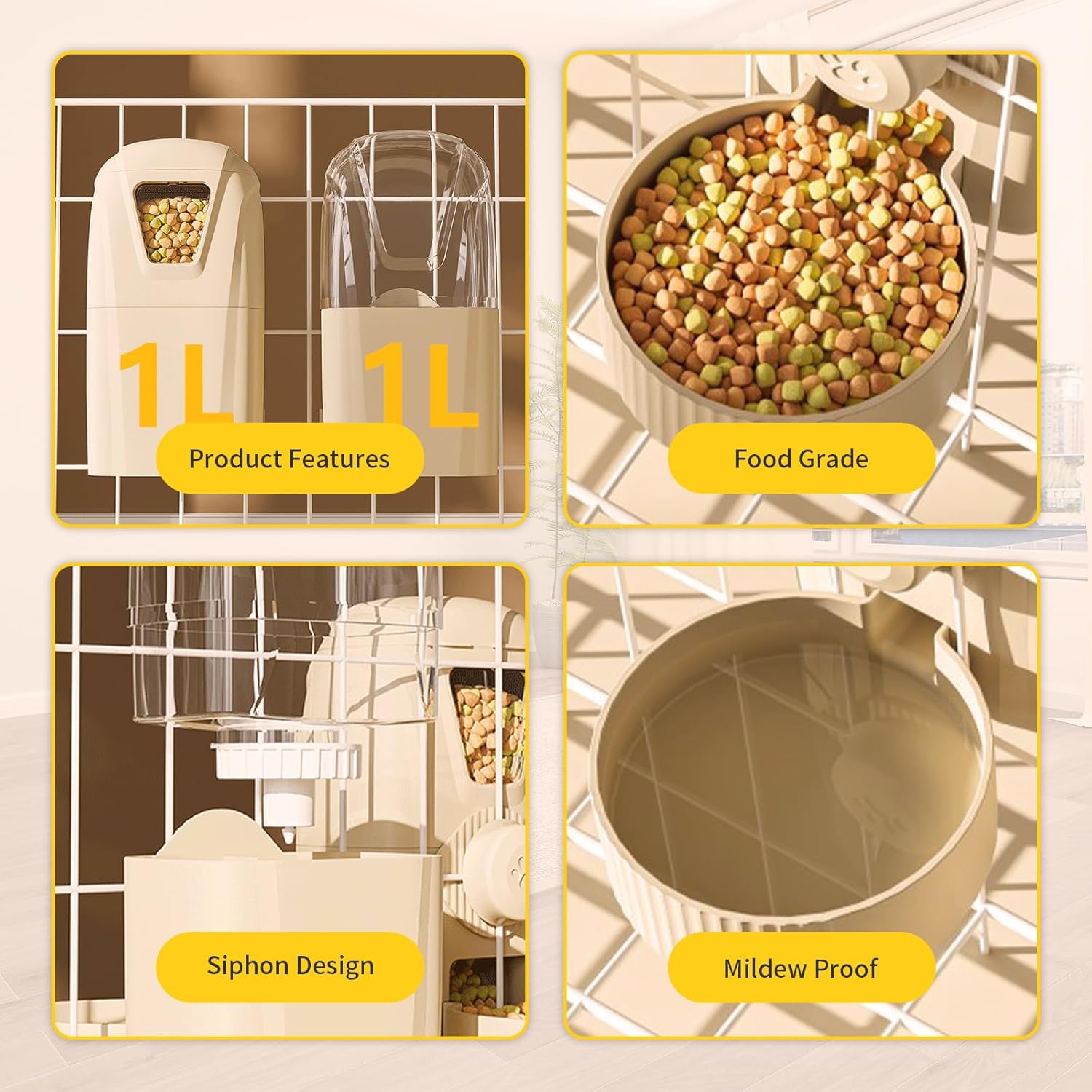 - Automatic Supply Design: Automatic bunny feeder and water uses natural gravity feeding technology to distribute food and water, providing healthy food and fresh water to your pet in a timely manner.
