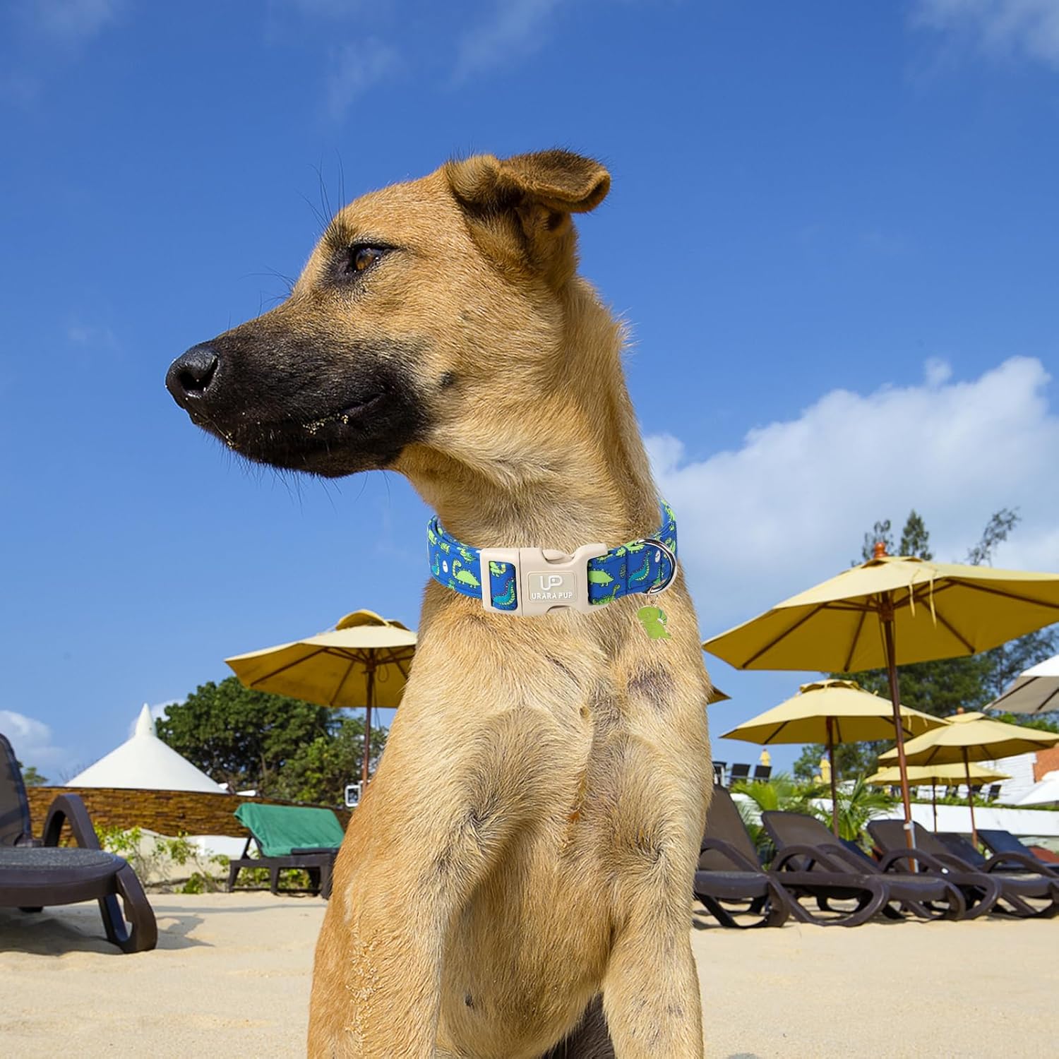 - Fun & Playful Dinosaur Theme: The UP URARA PUP dog collar features a vibrant summer design with various cute dinosaurs, dinosaur eggs, and a blue background, making it a perfect choice for pet owners who want to add a playful touch to their dog's summer wardrobe.