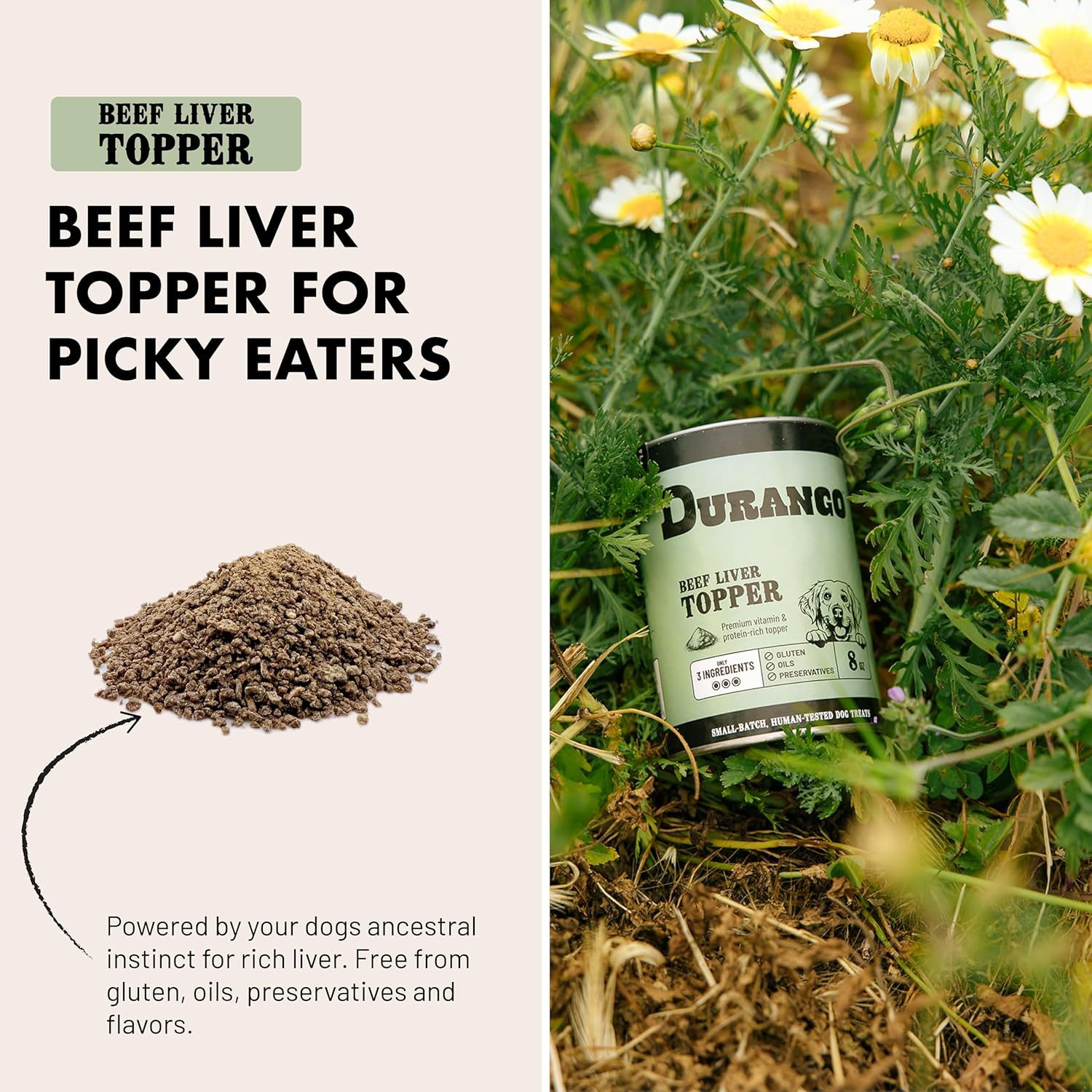 Durango High-Protein Dog Food Topper - Rich Beef Liver Meal Enhancer for Picky Eaters - Limited Ingredient Kibble Booster - 8 oz Tin - Made in USA - Plastic-Free - Easy to Scoop - 60 Servings