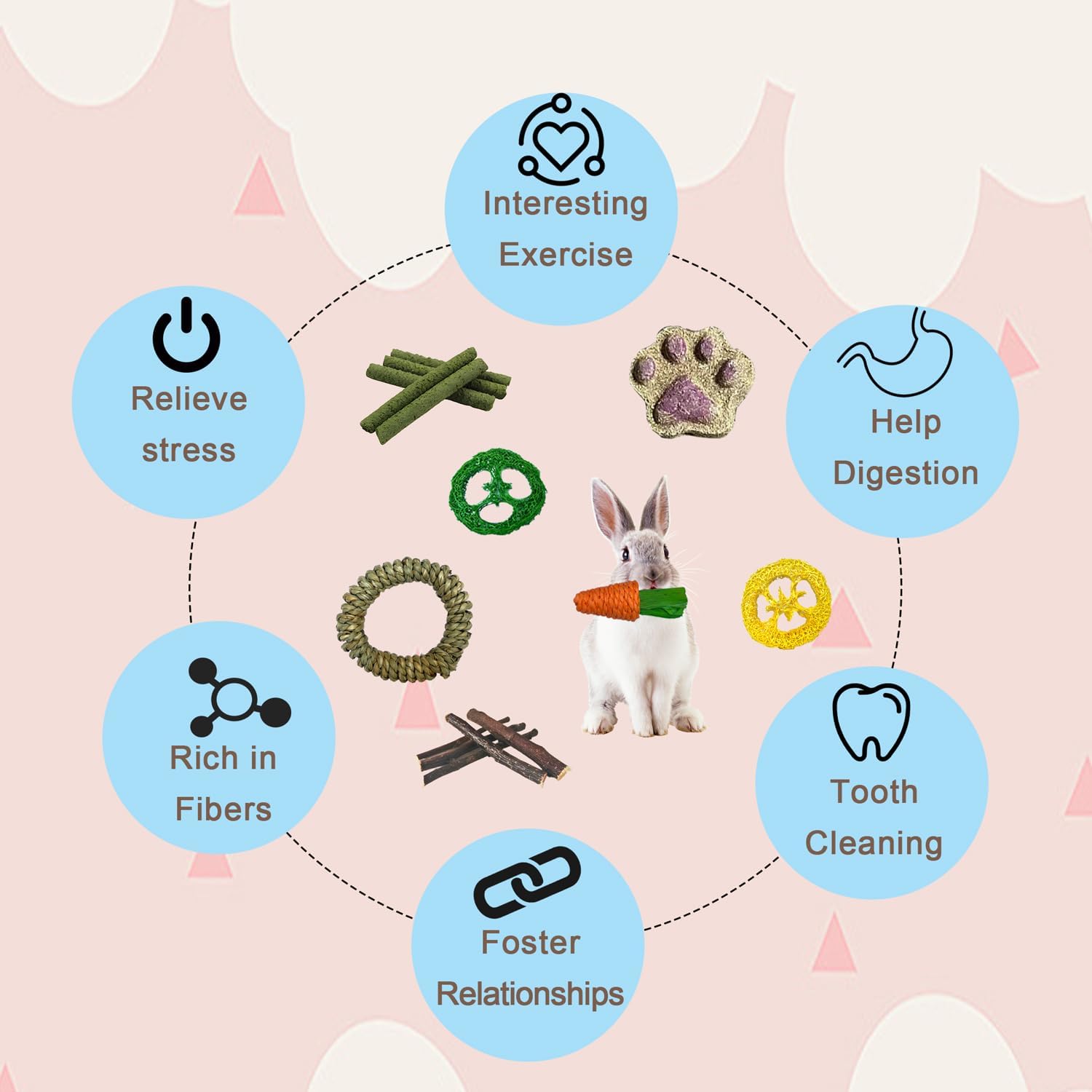LUCKITTY Rabbit Tunnel Toy, Collapsible 3-Way Hideout Tunnel with Chew Toys for Rabbits, Guinea Pigs, Ferrets, Kittens & Small Pets - Gray & White Bunny Carrot Design Hideout (33"x20"x9.5")