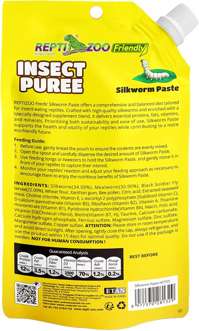 Gecko Bearded Dragon Food Insect Puree, Silkworm Paste Reptile Food Made with Fresh Insects