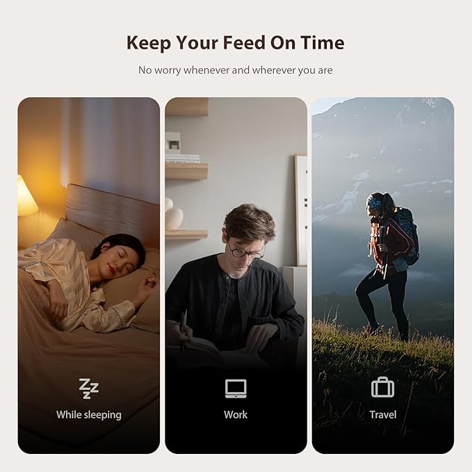 - EASY OPERATION, MULTIPLE OPTIONS: the cat feeder automatic has the convenience of app control while retaining the flexibility of manual operation. You can feed your pet immediately (without interrupting scheduled feedings) or set up a feeding schedule directly on your phone for seamless eating