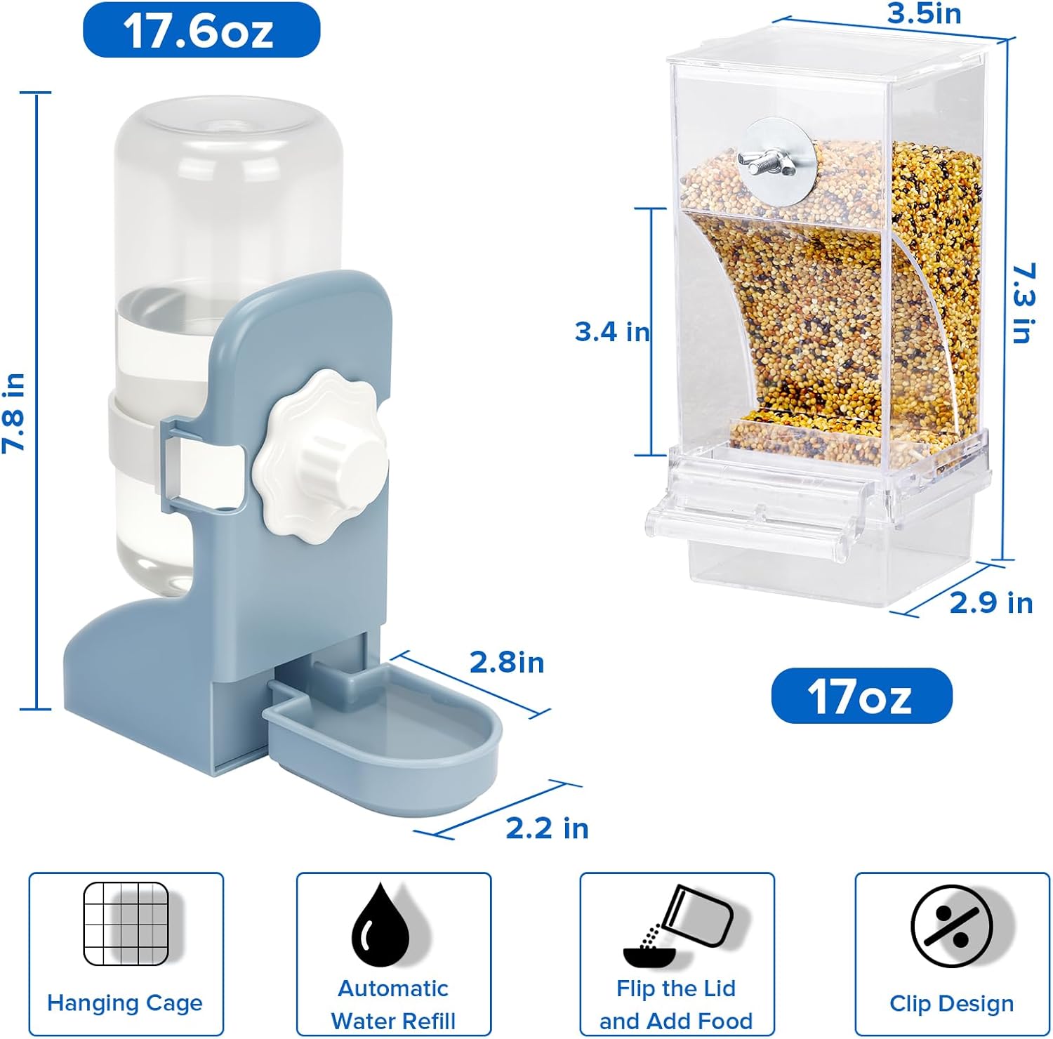 No Mess Bird Feeder Water Dispenser Set, Parakeet Cage Accessories, Bird Feeder and Waterers in Cage for Cockatiels, Finches, Lovebirds, Budgies, Canaries