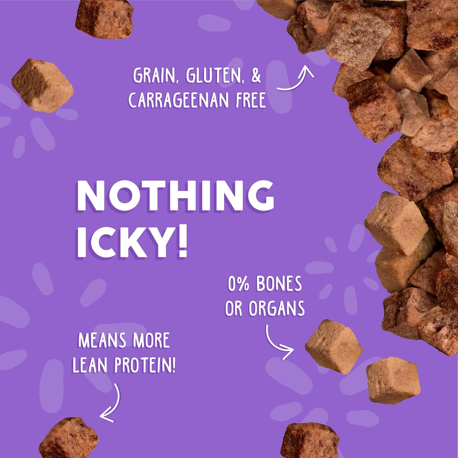 - All natural. Free of grains, gluten, carrageenan, wheat, corn, and soy. No artificial colors, flavors, preservatives, or animal by products
