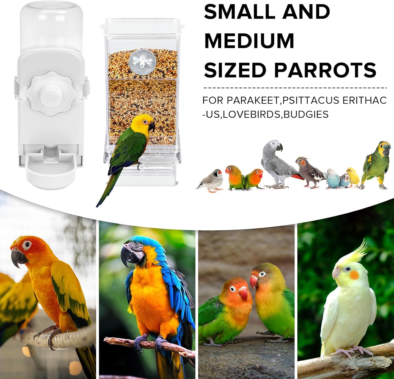 No Mess Bird Feeder Water Dispenser Set, Parakeet Cage Accessories, Bird Feeder and Waterers in Cage for Cockatiels, Finches, Lovebirds, Budgies, Canaries