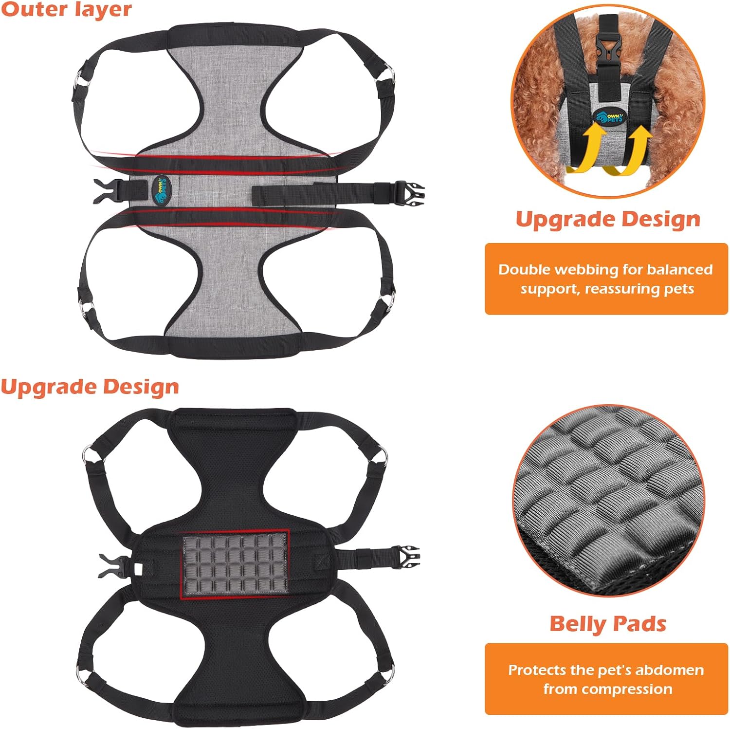 - Multi-Purpose Pet Grooming Hammock: The pet grooming hammock can be used for professional grooming and daily care. It can also be used as a dog sling to carry your dog for a walk, or to help disabled dogs go up and down stairs.
