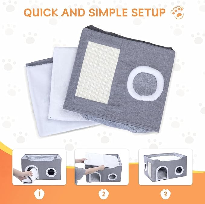 - Effortless Assembly & Storage: Say goodbye to tools and hardware! This cat shelter is a breeze to set up without any screws or extra parts. Plus, it's foldable and compact, making it a space-saver under couches, beds, or in closets. Perfect