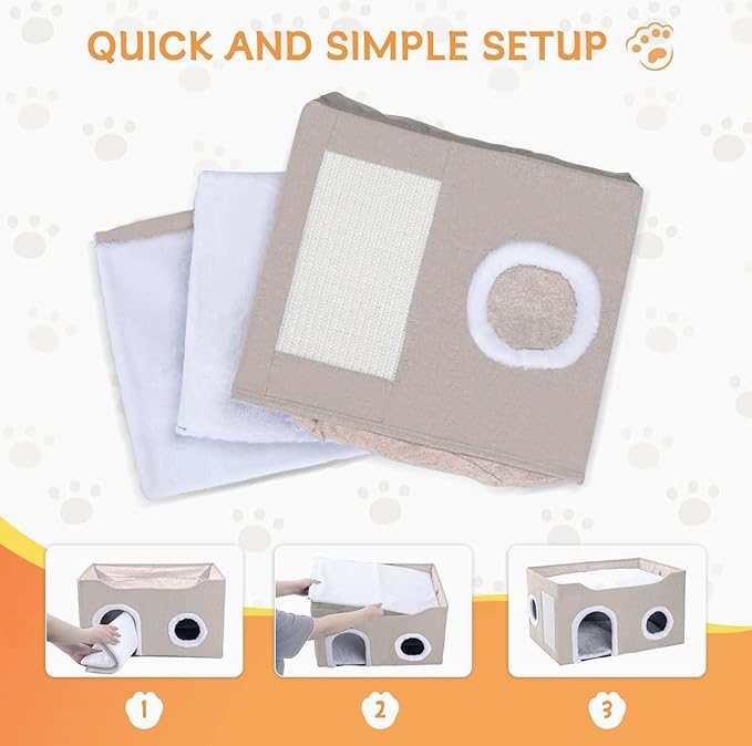 - Effortless Assembly & Storage: Say goodbye to tools and hardware! This cat shelter is a breeze to set up without any screws or extra parts. Plus, it's foldable and compact, making it a space-saver under couches, beds, or in closets. Perfect