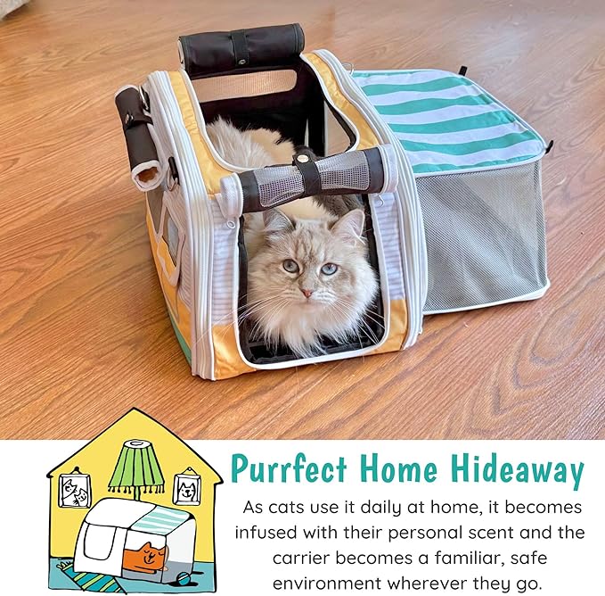 New Premium Soft-Sided 2-in-1 Kittyrama Cat Carrier & Home Hideaway – Vet-Recommended Calming Den, Dual-Use Lounge & Travel Carrier with SBS Zippers, Airline-Approved Under-Seat Fit
