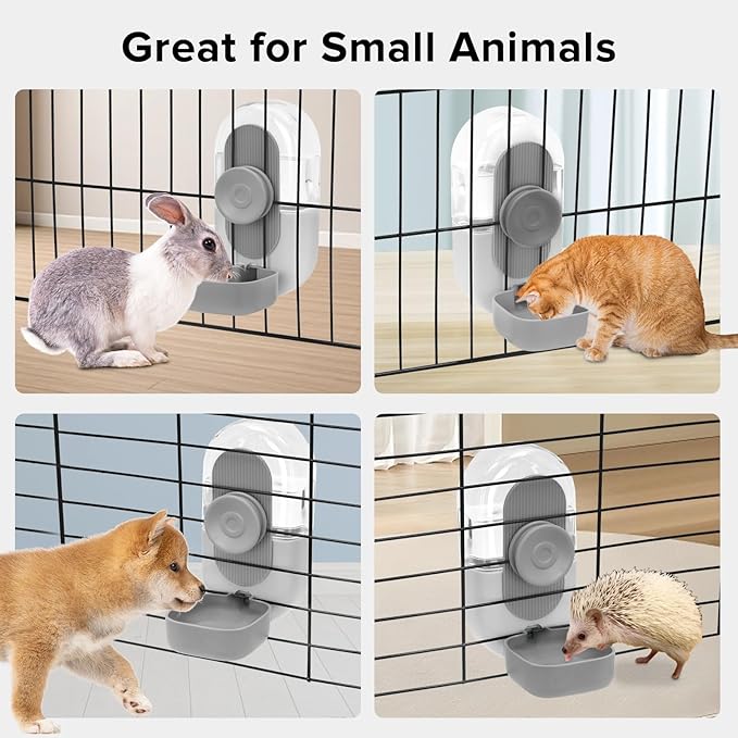 - Quiet and Convenient: Compared with ball bearing water bottles, this rabbit water dispenser will not make annoying noises when your pet drinks water. The design of the external water bottle holder makes water changes more convenient and efficient.