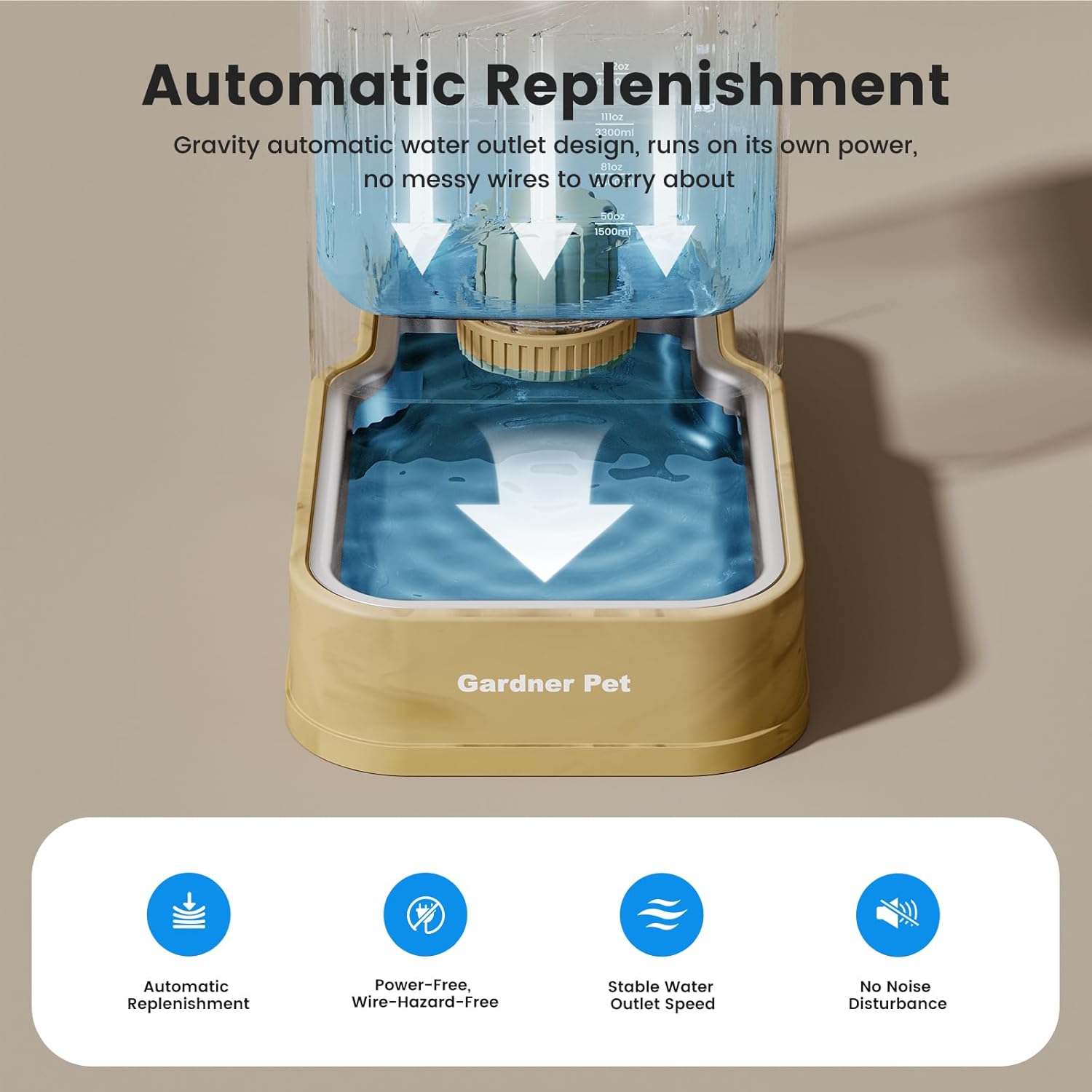 - Silent, Spill-Proof Design - Gravity water feeder is Motor-free operation ensures silent water dispensing. Anti-tip square base stays steady during play, while advanced filtration keeps water fresh.