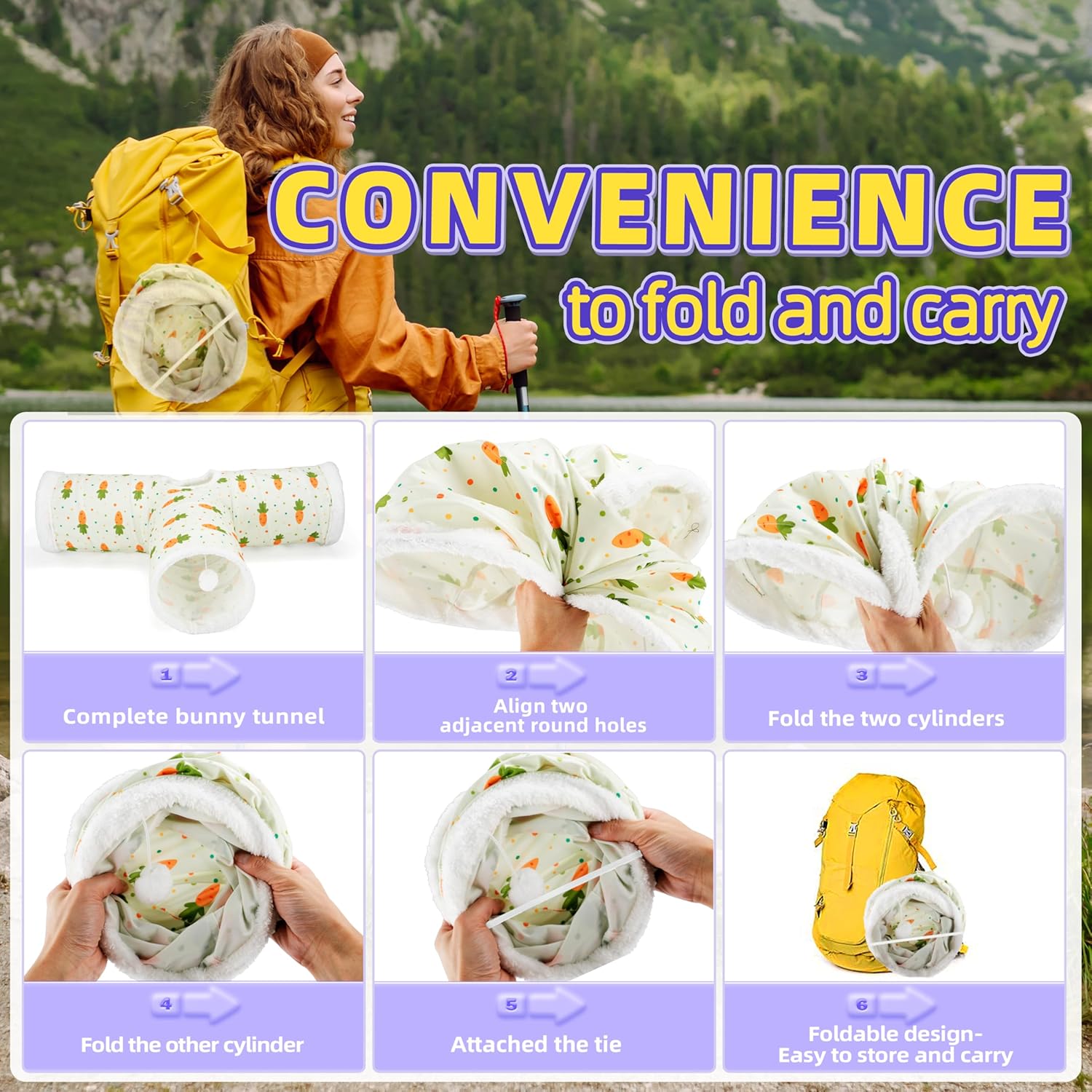 Bunny Tunnels & Tubes Collapsible 3 Way Rabbit Hideout with 13pcs Toys for Bunny Guinea Pig Hamster Chinchilla Hedgehog Rat Ferret Kitten (Fleece Carrot)