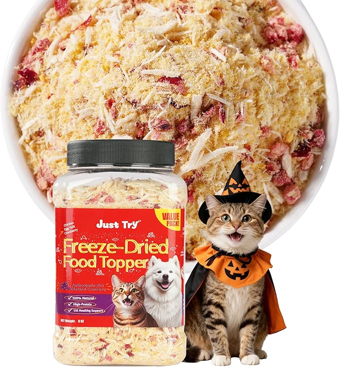 Just Try 8 OZ Cranberry Freeze Dried Cat & Dog Food Toppers Urinary Tract Cat Treats Mixers Low Calorie Chicken Egg Yolk High Protein for Kidney Bladder UT Support