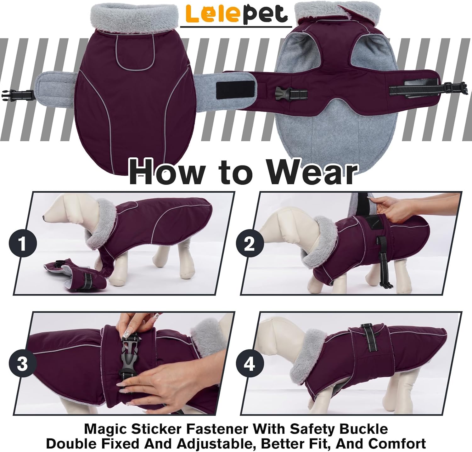 - WATERPROOF DOG JACKET FOR COLD DAYS: Whether you are camping, snow skiing, or hiking, this dog fleece provides optimal warmth and dryness in foggy, lightly rainy, and snowy conditions. Lelepet warm dog winter coat is perfect for outdoor activities