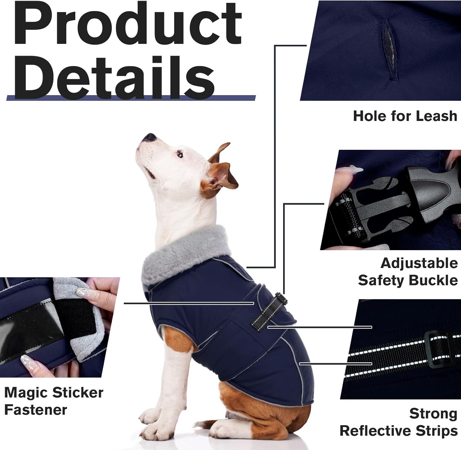 - REFLECTIVE DOG VEST WITH LEASH HOLE: This dog snow jacket is designed with reflective strips, ensuring their safety during nighttime walks.It helps you locate your dog in low-light conditions. The back leash hole makes outdoor walking more convenient