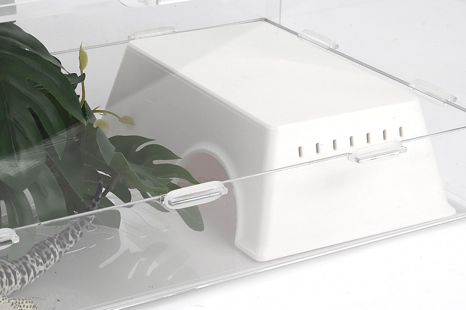 - Scientific ventilation system, balancing comfort and privacy: There are ventilation holes designed on both sides to increase air circulation, maintain humidity, prevent heat accumulation, and prevent direct view of the interior from the outside. At the same time, it retains the pet's ability to perceive changes in environmental airflow, which is in line with the snake's habit of judging the outside world through air vibration. This makes it a great addition to any leopard gecko tank setup.