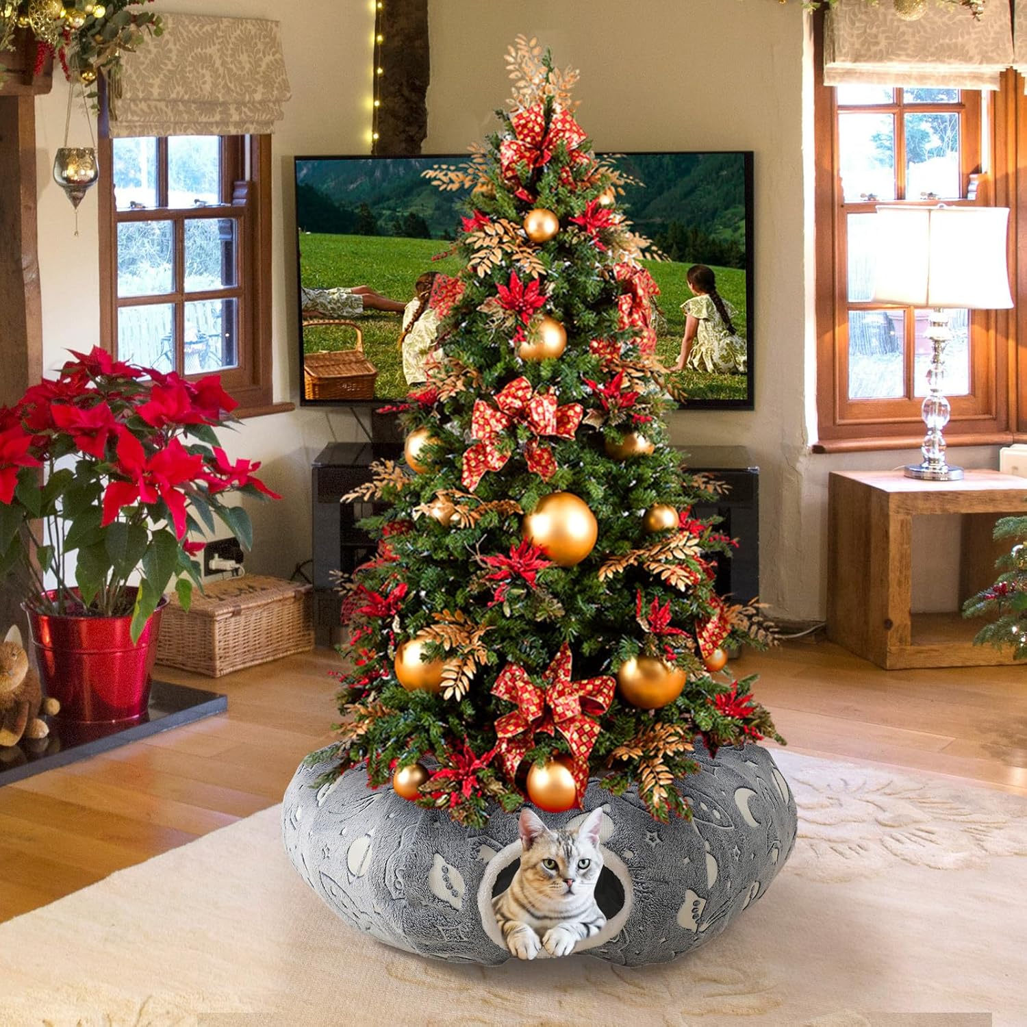 - Triple Function Design: The inner circle is a cute cat bed and the outer circle is a tunnel toy. In addition to being serving as a cat donut tunnel, it can also be placed at the bottom of the Christmas tree to protect it from damage and add warmth and fun to the holidays