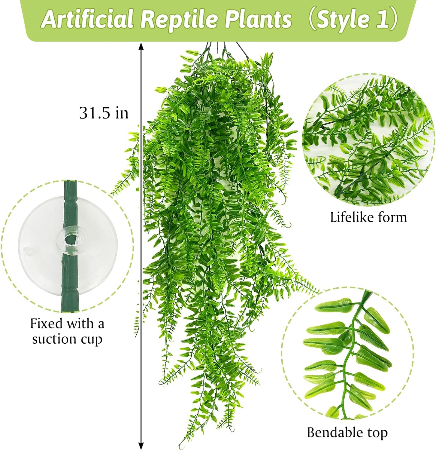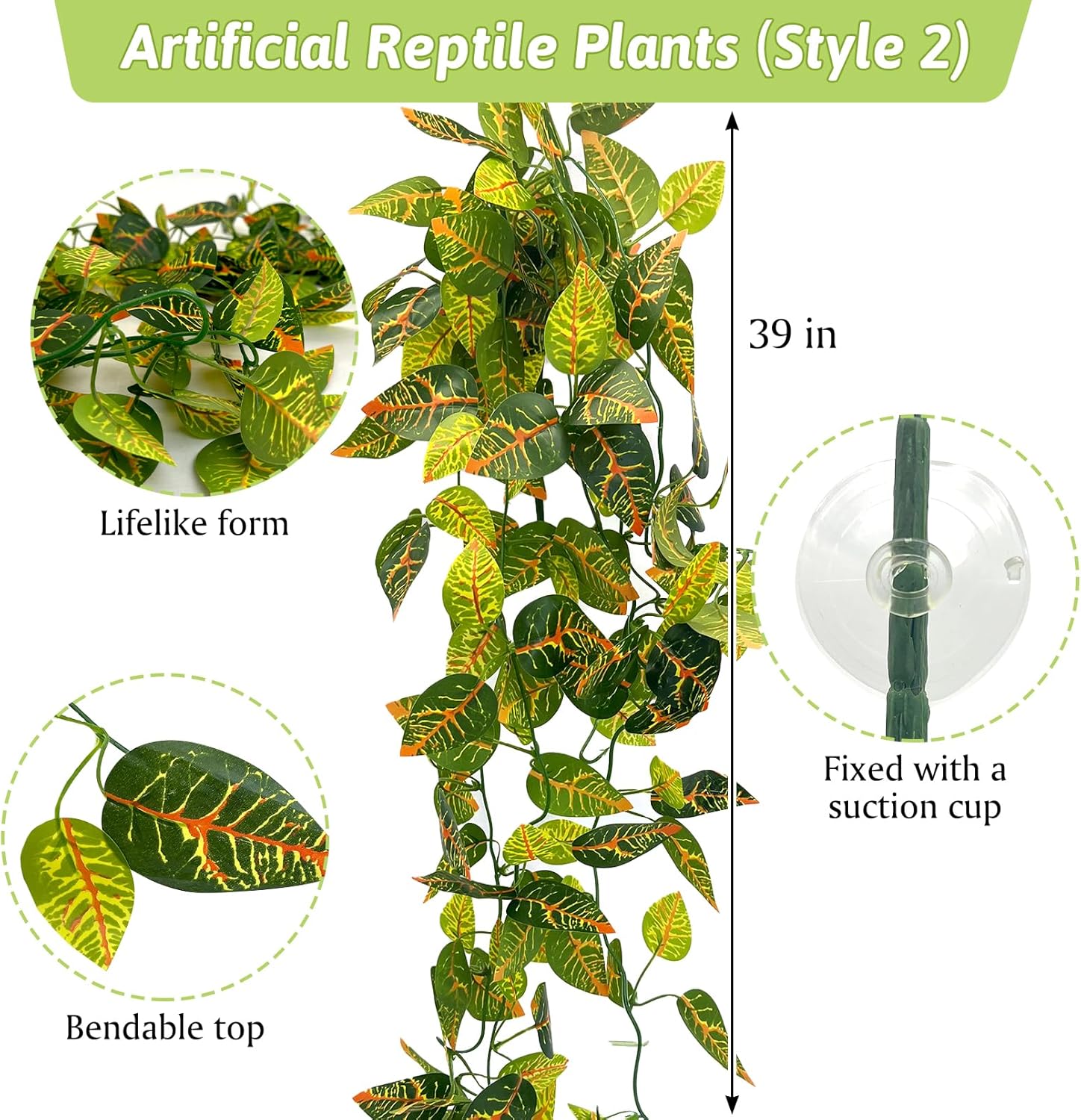 - Reptile Plant Decorations: Made of safe plastic for better protection of your pet, measuring 33-39 inch in length. It not only adds greenery to the habitat, but also is easy to clean so you don't have to spend much time maintaining it