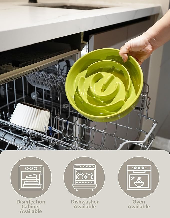 - 【Easy to Clean】 Dishwasher available—— Our ceramic slow feeder dog bowls are ideal for both dry and wet food, easy to clean and dishwasher safe.
