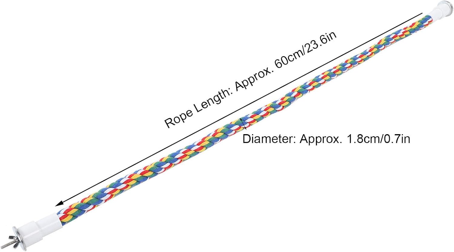 2PCS 60cm/23.6in Bird Rope Perch, 1.8cm Soft Cotton Parakeet Perches, Colorful Bird Cage Accessories with Fixing Screws for Birds to Chew and Stand On