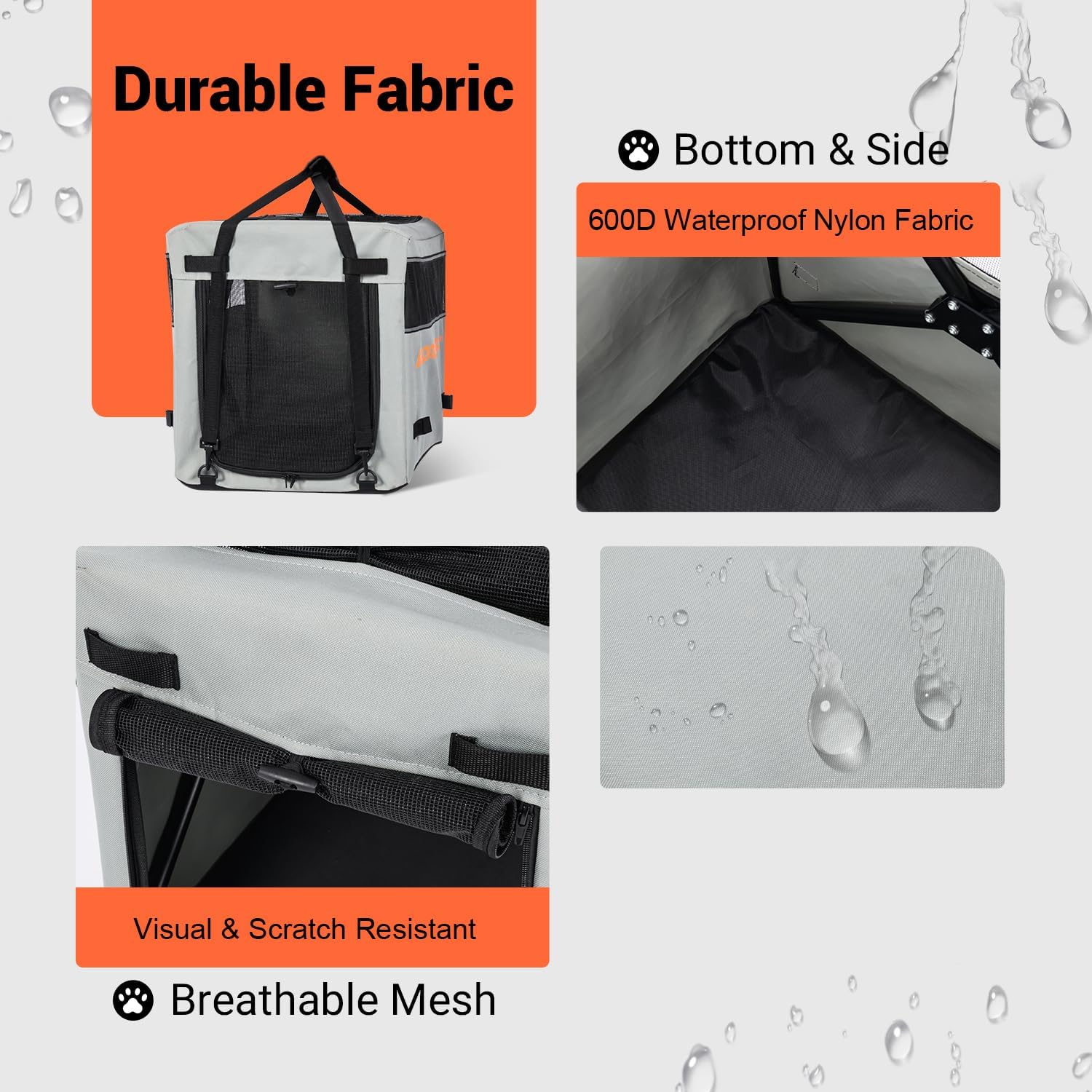 - [Rip-Resistant & Waterproof Fabric] Soft sided dog crate dog carrier made with heavy-duty 600D nylon that withstands outdoor elements and resists scratches from pet claws. The reinforced material ensures long-lasting durability for years of adventures