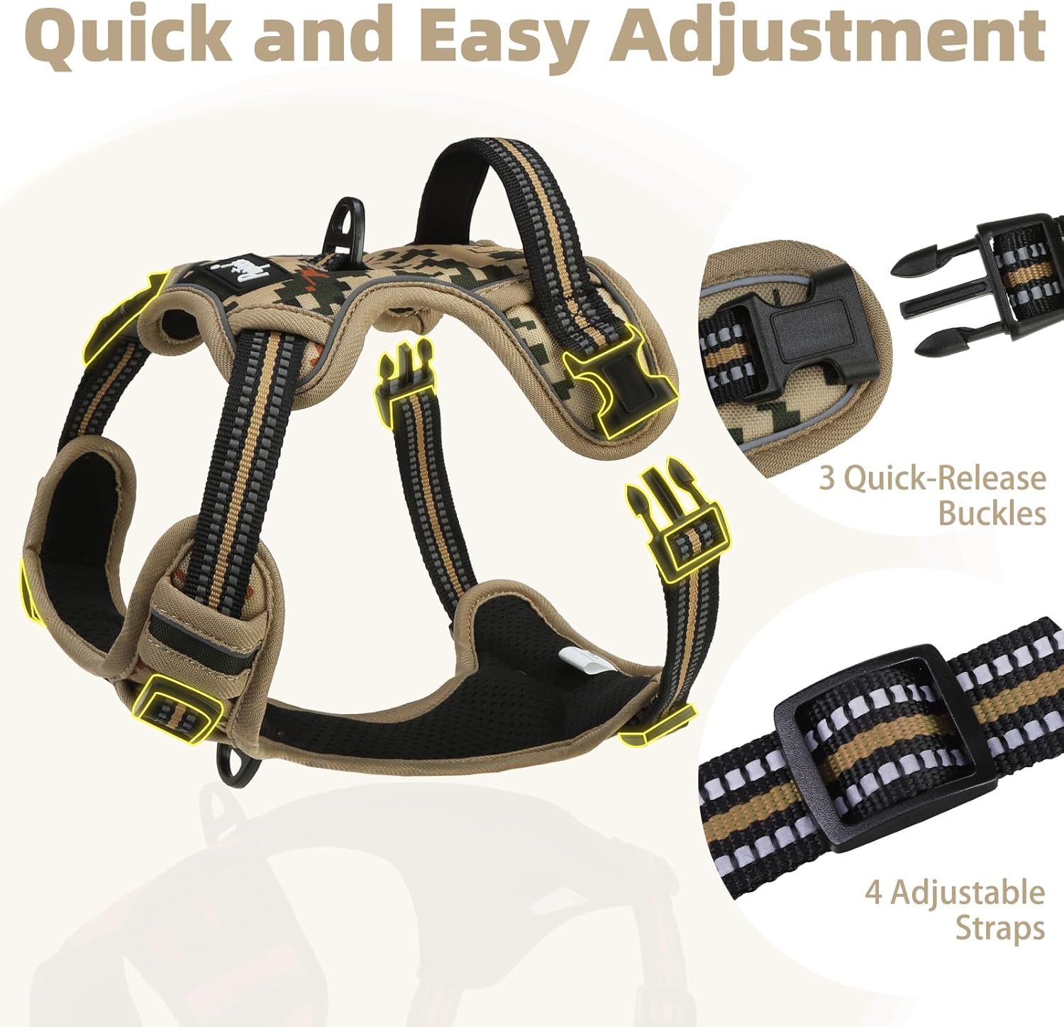 PUPTECK No Pull Tactical Dog Harness Medium Sized, Adjustable Reflective Dog Harness with Handle Easy Control, Comfortable Soft Padded Pet Vest Harness for Medium Dogs, Camouflage M