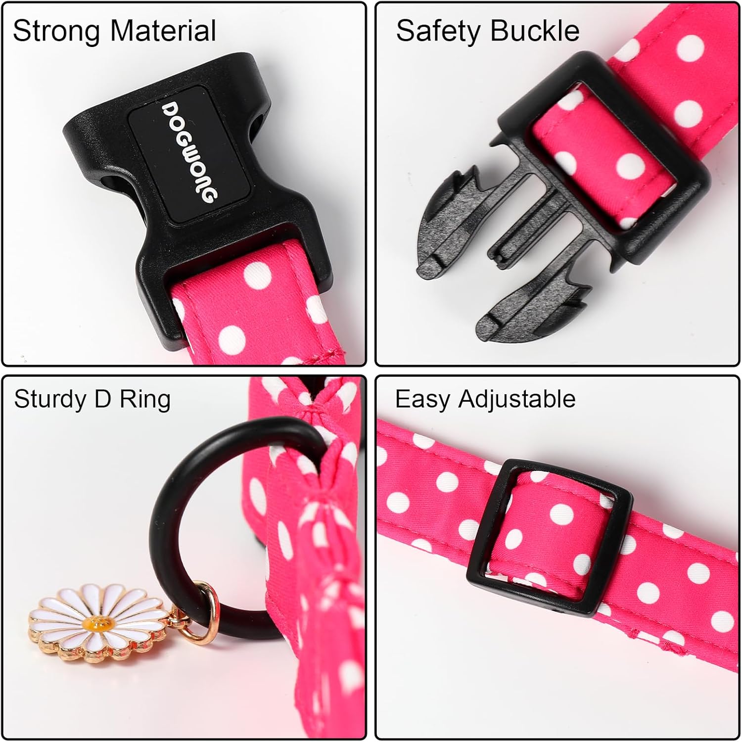 - Unique Design: Make your dog stand out this summer with our pink dots dog collar. Suitable for all breeds and sizes, this collar is perfect for both male and female dogs.