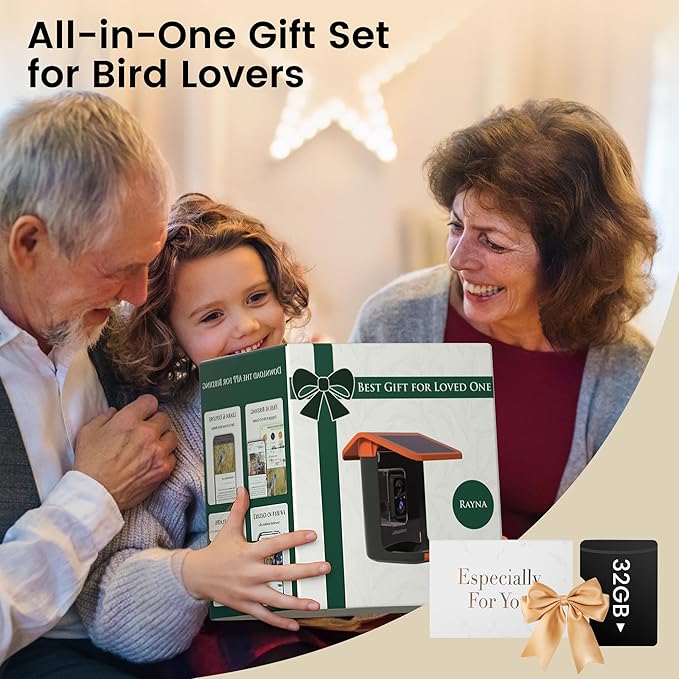 - Bird Watching Gift: RichBird camera bird feeder includes 32GB SD and supports video storage via cloud storage (includes 500MB free for 2 years). The Bird feeder coming packaged in a bird-themed gift box and includes greeting card, is the ideal gift for Christmas, Father's Day, birthdays, or anniversaries. RichBird bird house with camera enables multi-user access for family and friends. Craft and share beautiful video compilations with ease