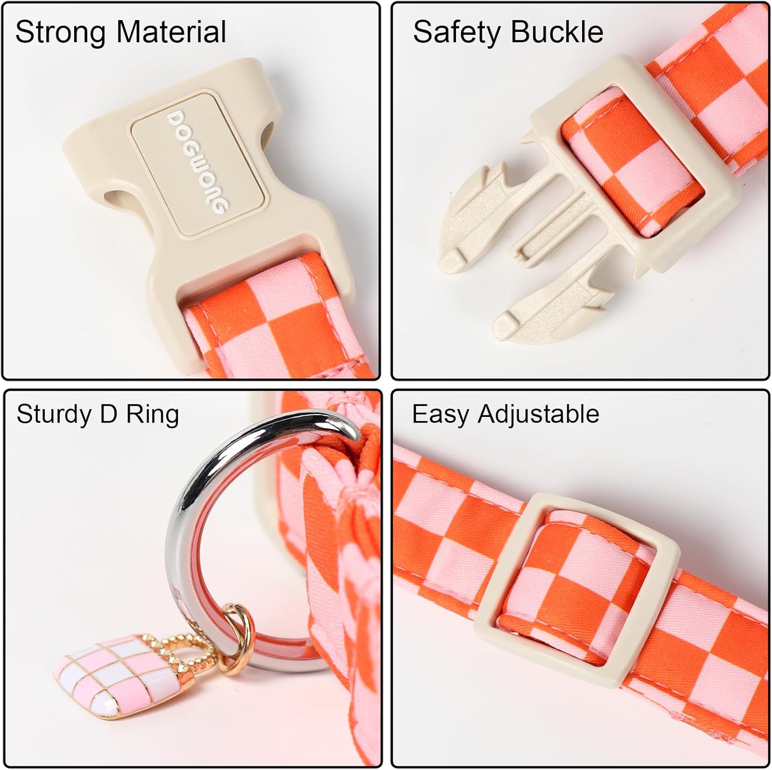 - Unique Design: Make your dog stand out this summer with our orange pink plaid dog collar. Suitable for all breeds and sizes, this collar is perfect for both male and female dogs.