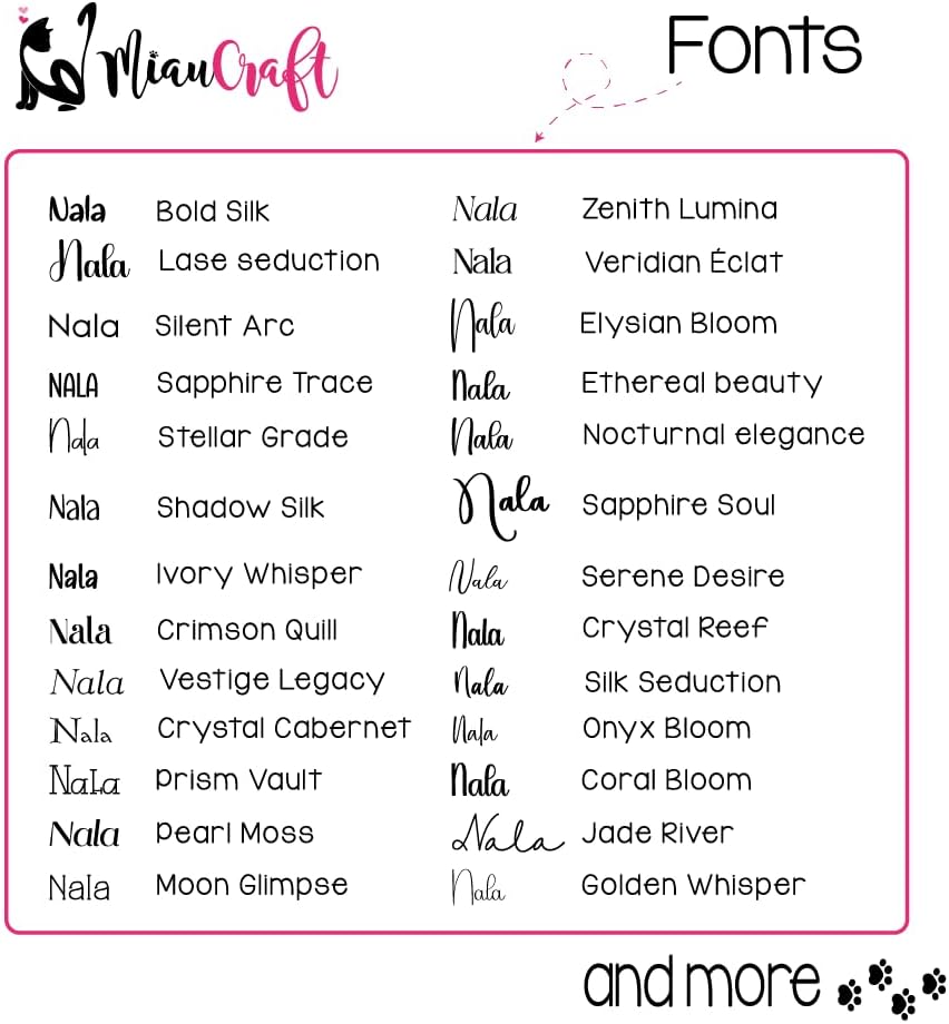 - ๐พVersatile Desing and Aesthetic Appeal**: Choose from an array of multiple classy stylish designs, fonts, elegant colors and Shape Options to suit your pet personality. Whether adorning a cat collar with name tag or dog tag necklace.