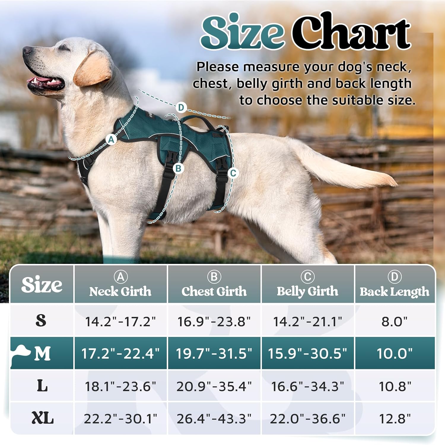 rabbitgoo Escape Proof Dog Harness Medium, Soft Padded Full Body Pet Harness, Reflective Adjustable No Pull Vest with Lift Handle and Leash Clip for Walking Hiking Training, Dark Green, M